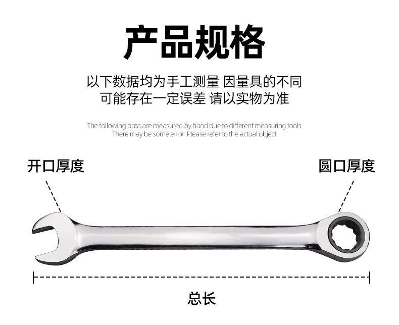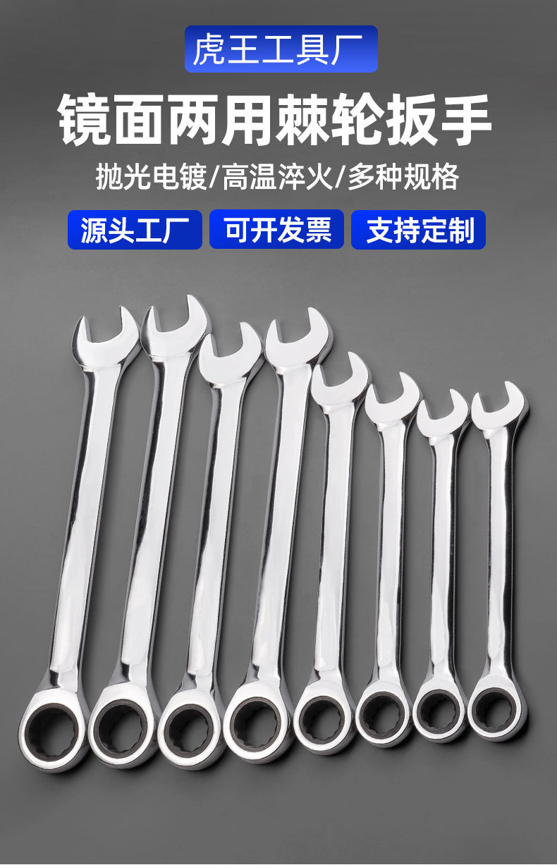 メーカー卸売り両用ラチェット快速レンチ直柄首振り口梅卸売り機械設備鏡面レンチ