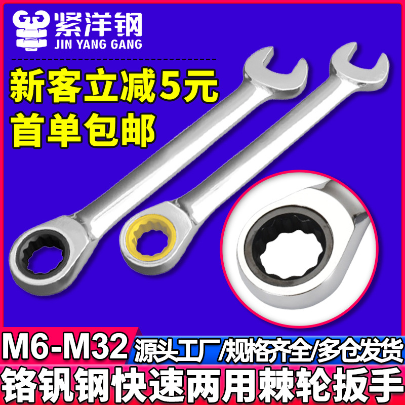 厂家批发 两用棘轮扳手 工业级高硬度 梅花开口双向快速省力扳手