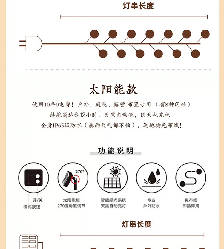 颜色 【高亮红线】5米18灯—插电款,【高亮红线】5米18灯—遥控太阳能+usb充电,【高亮红线】10米36灯—插电款,【高亮红线】10米36灯—遥控太阳能+usb充电,【太阳能】5米20灯,【太阳能】6.5米30灯,【太阳能】7米50灯,【太阳能】10米100灯—遥控+usb充电,【插电款】10米100灯,1.5米10灯-电池盒,1.5米10灯-usb,2米10灯-电池盒,2米10灯-usb,3米20灯-电池盒,3米20灯-usb,6米40灯-电池盒,6米40灯-usb,10米80灯-电池盒,10米80灯-usb