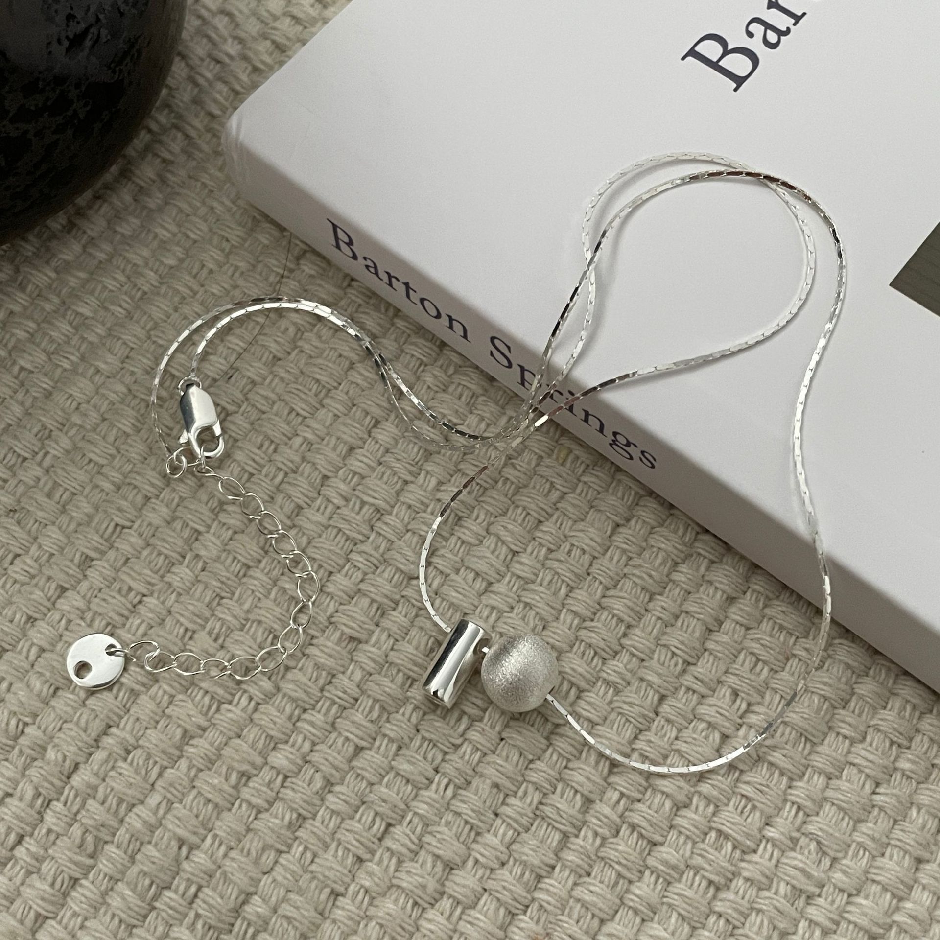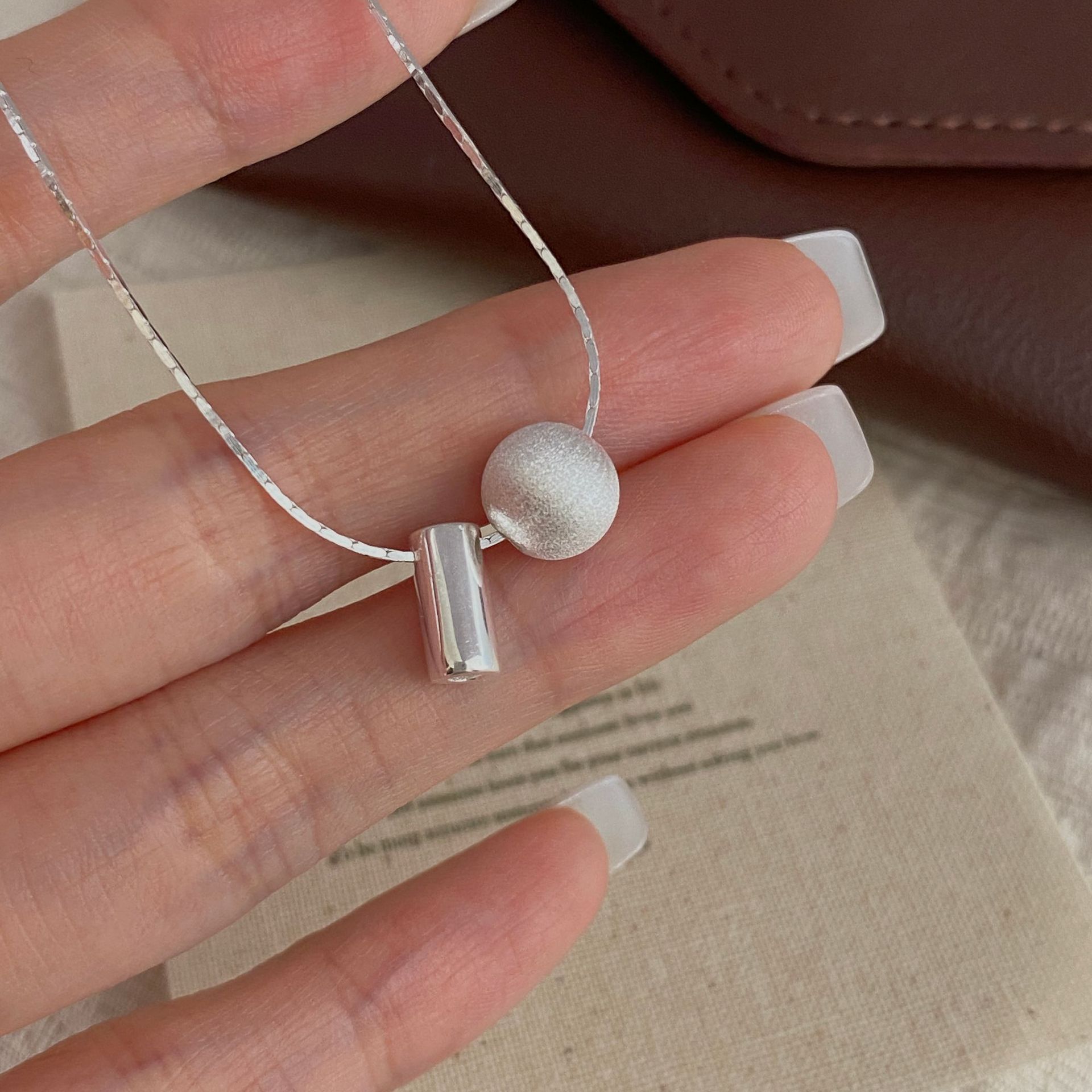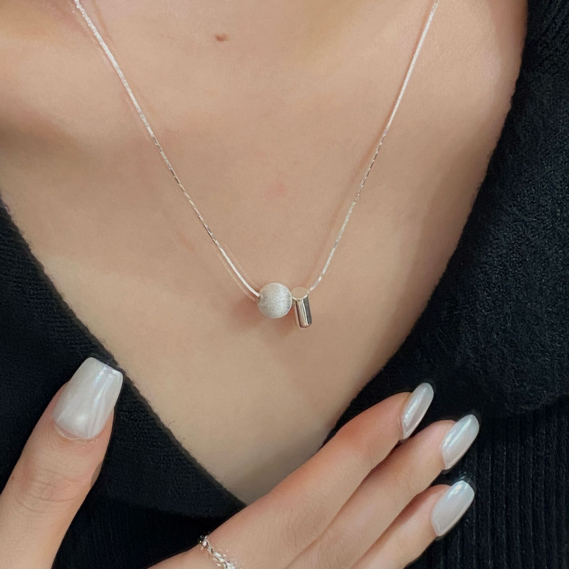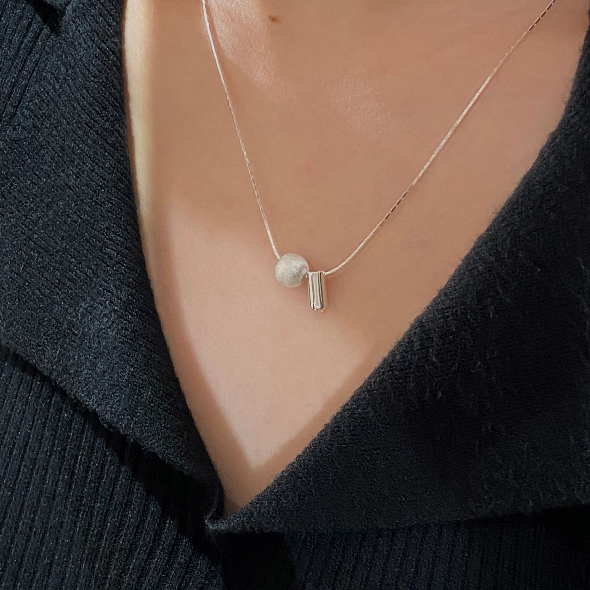 S925纯银韩版小众设计感拉丝球项链韩国风简约复古款锁骨链批发品