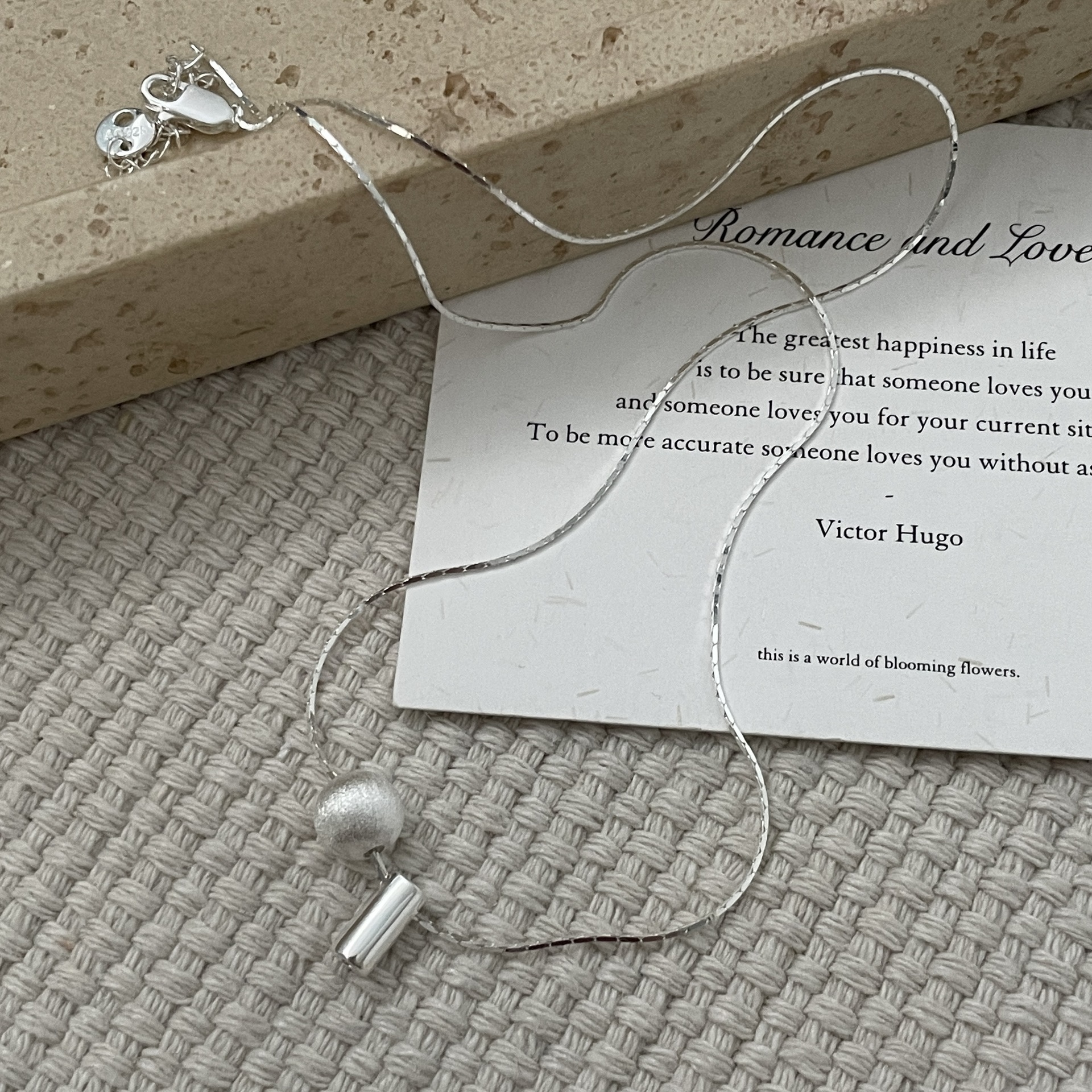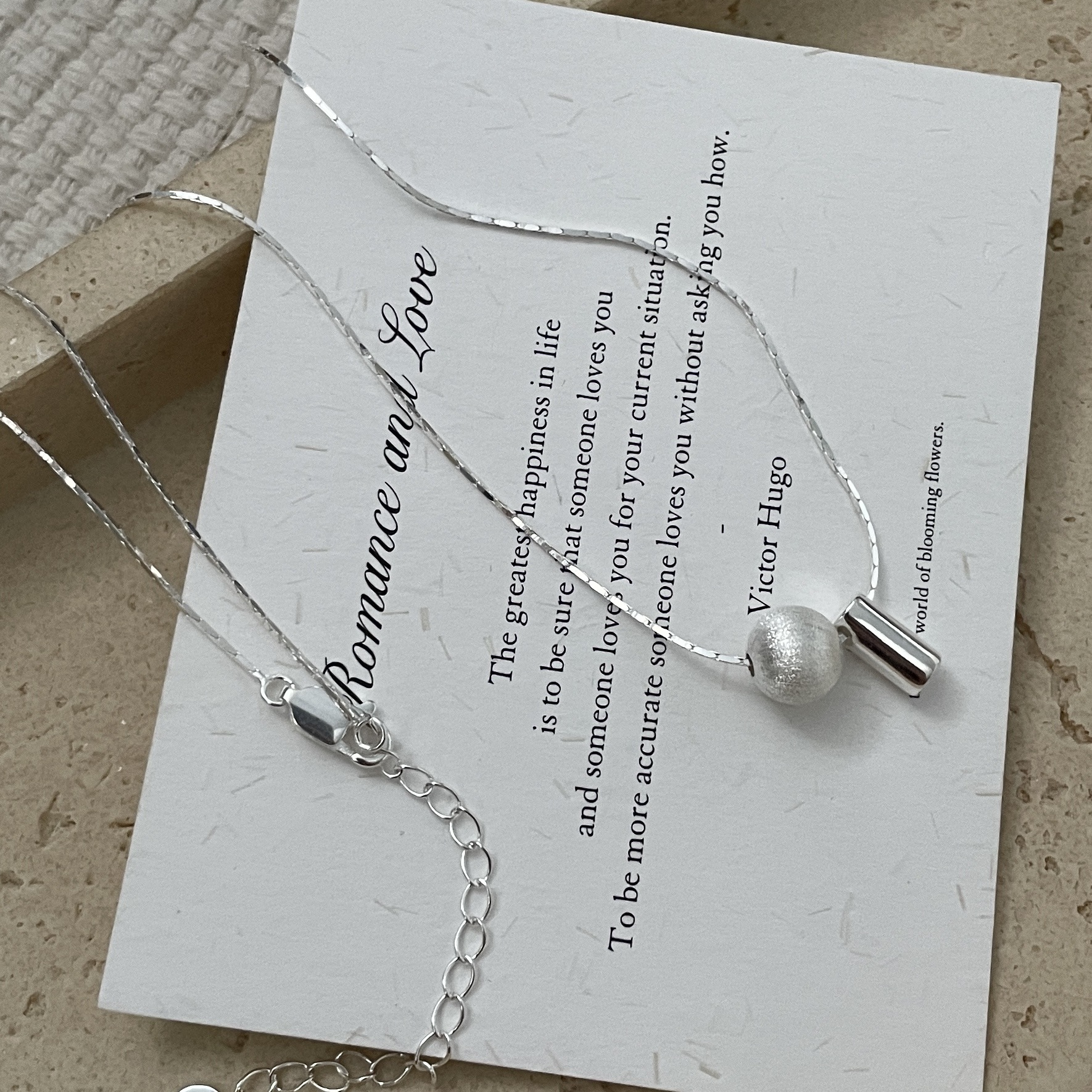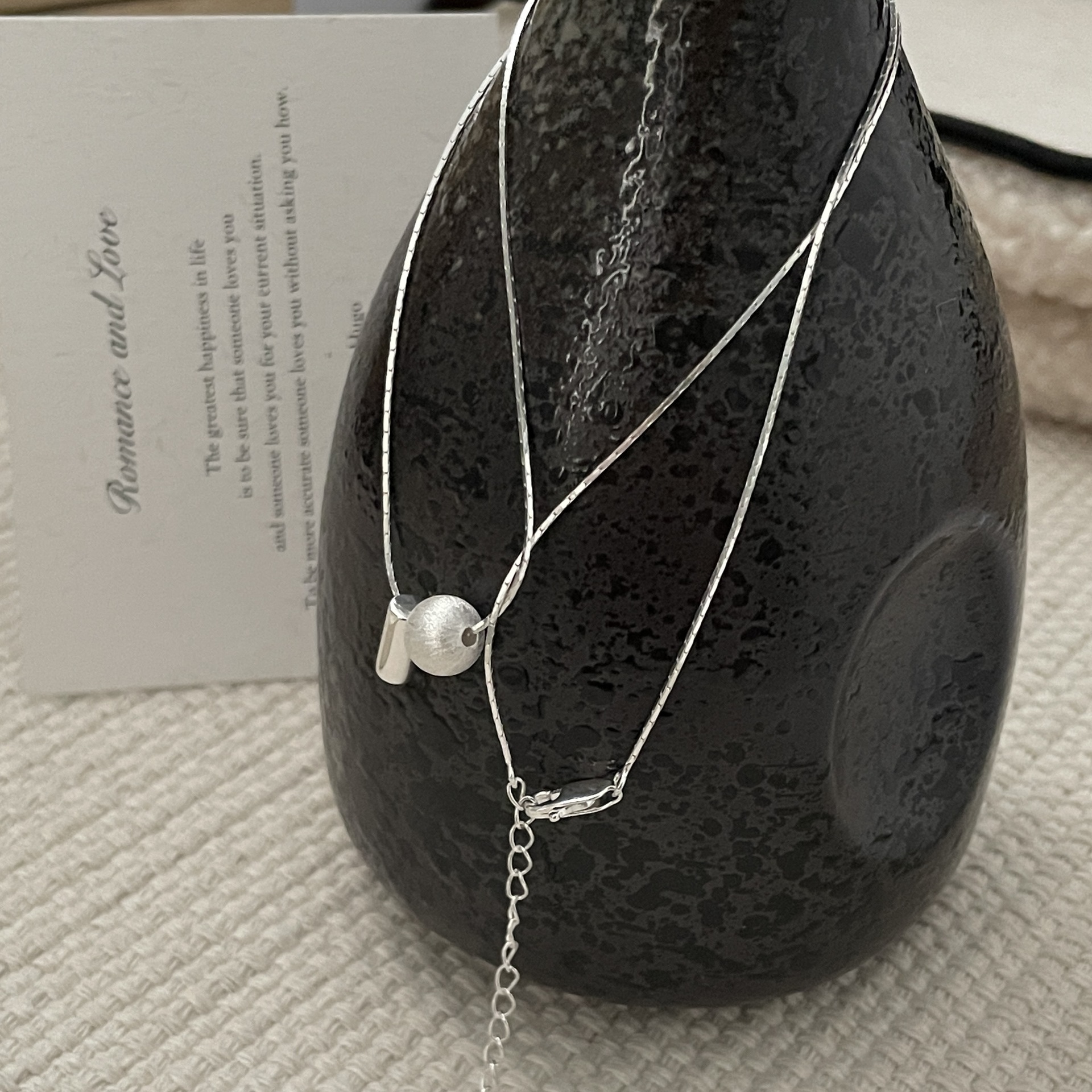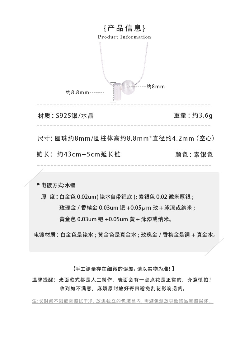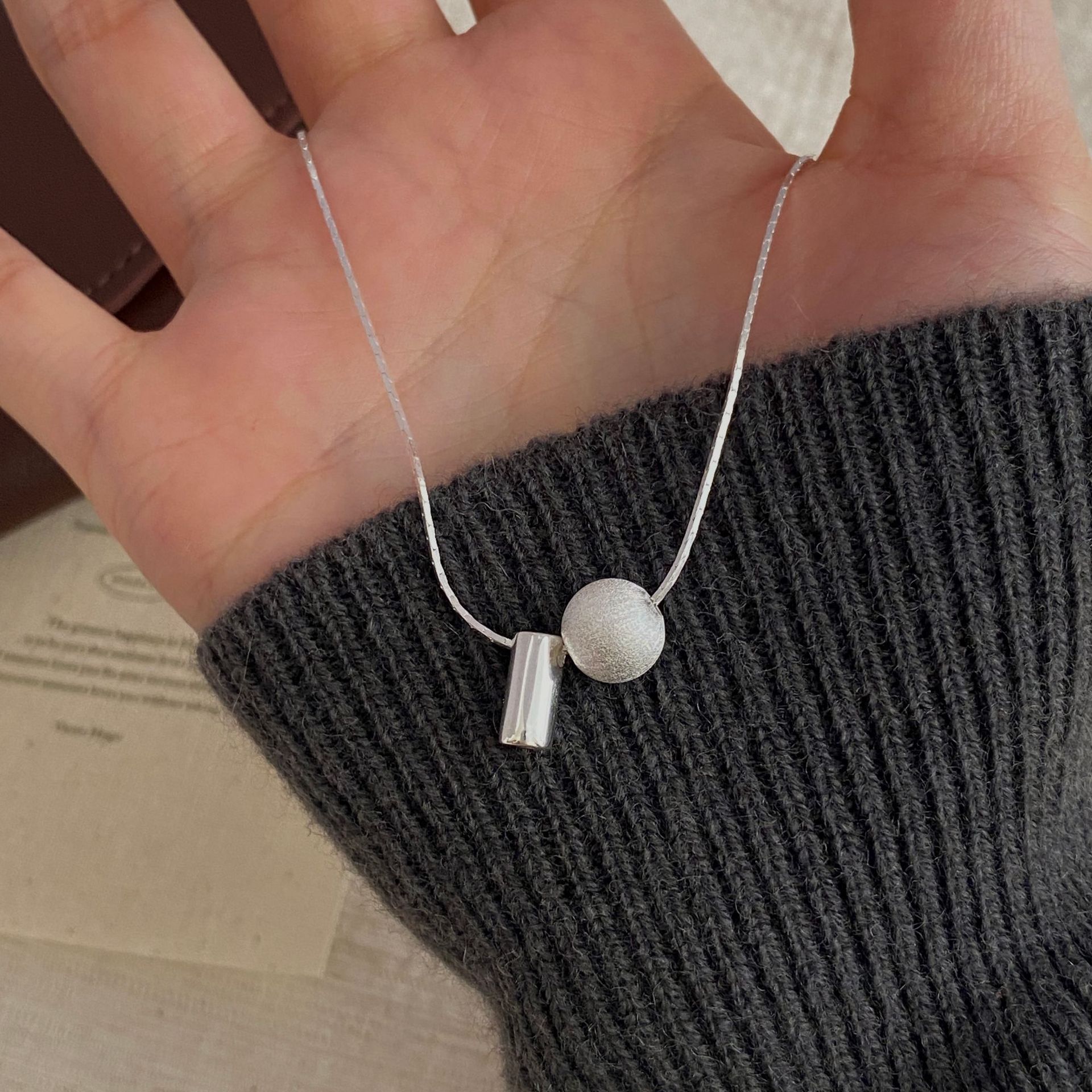 S925纯银韩版小众设计感拉丝球项链韩国风简约复古款锁骨链批发品