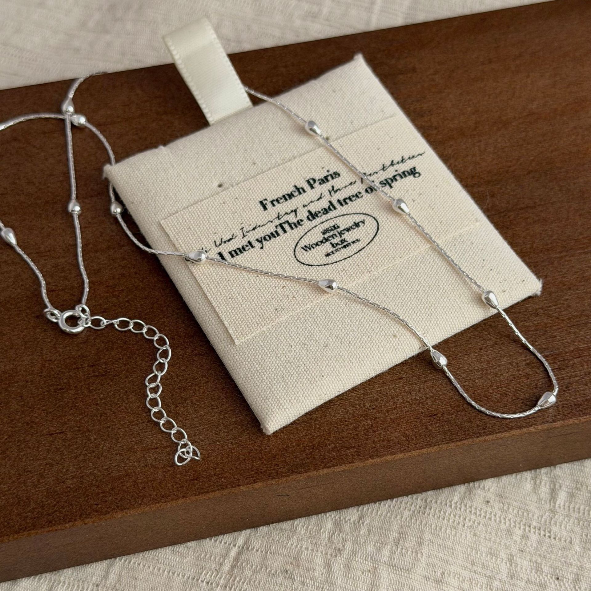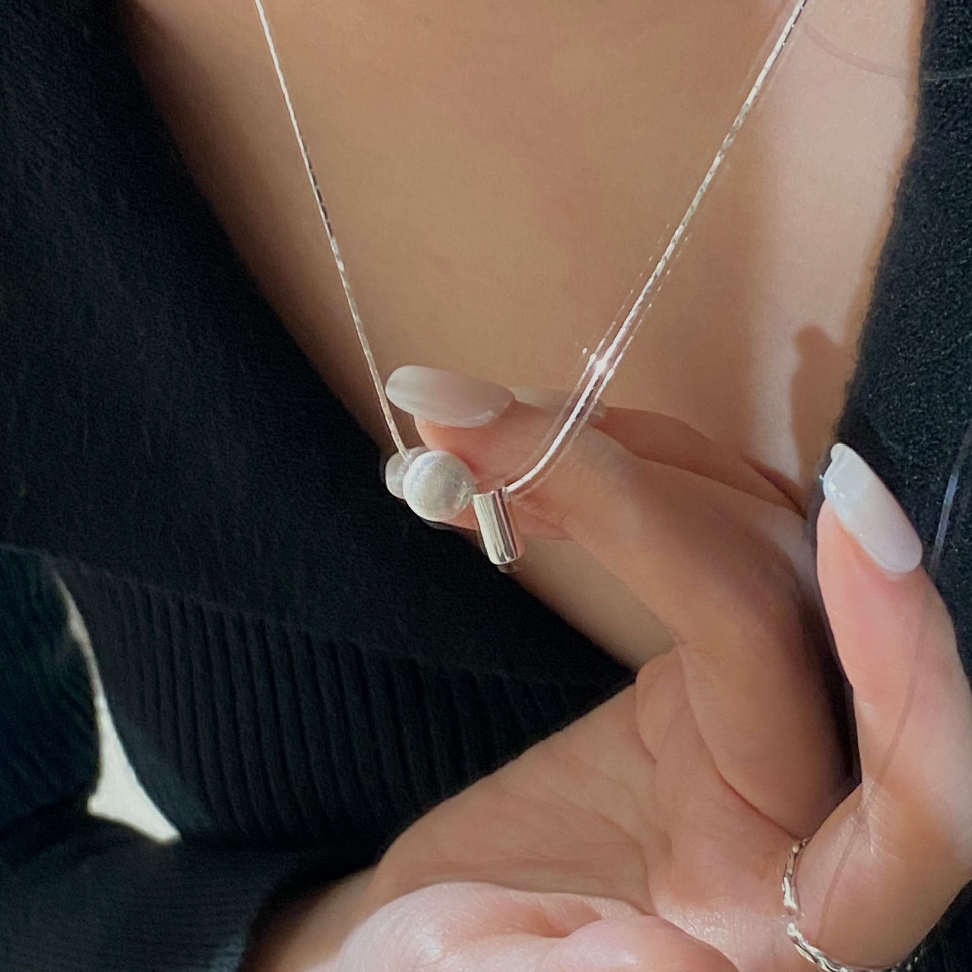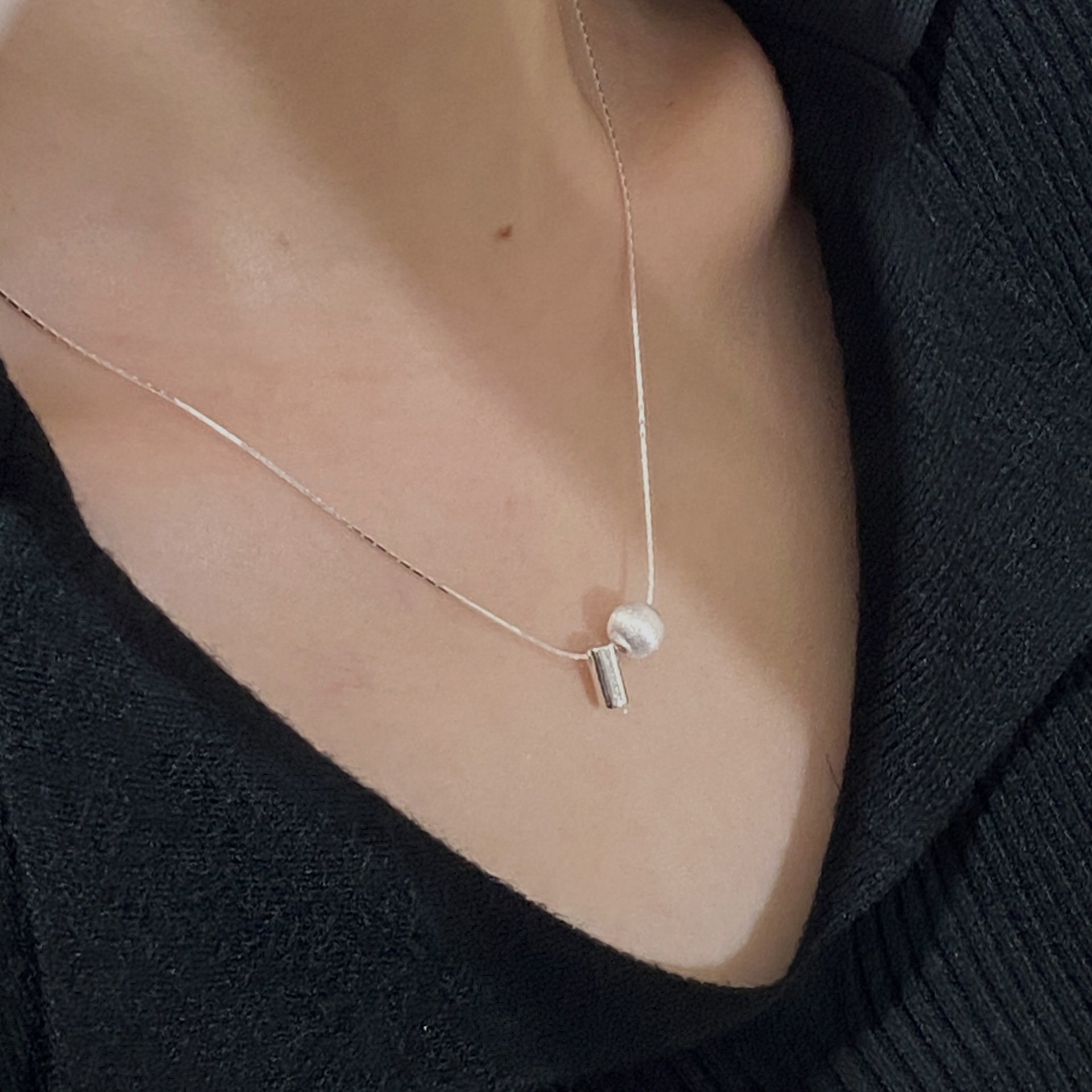 S925纯银韩版小众设计感包珠竹节项链韩系风简约时尚锁骨链首饰品