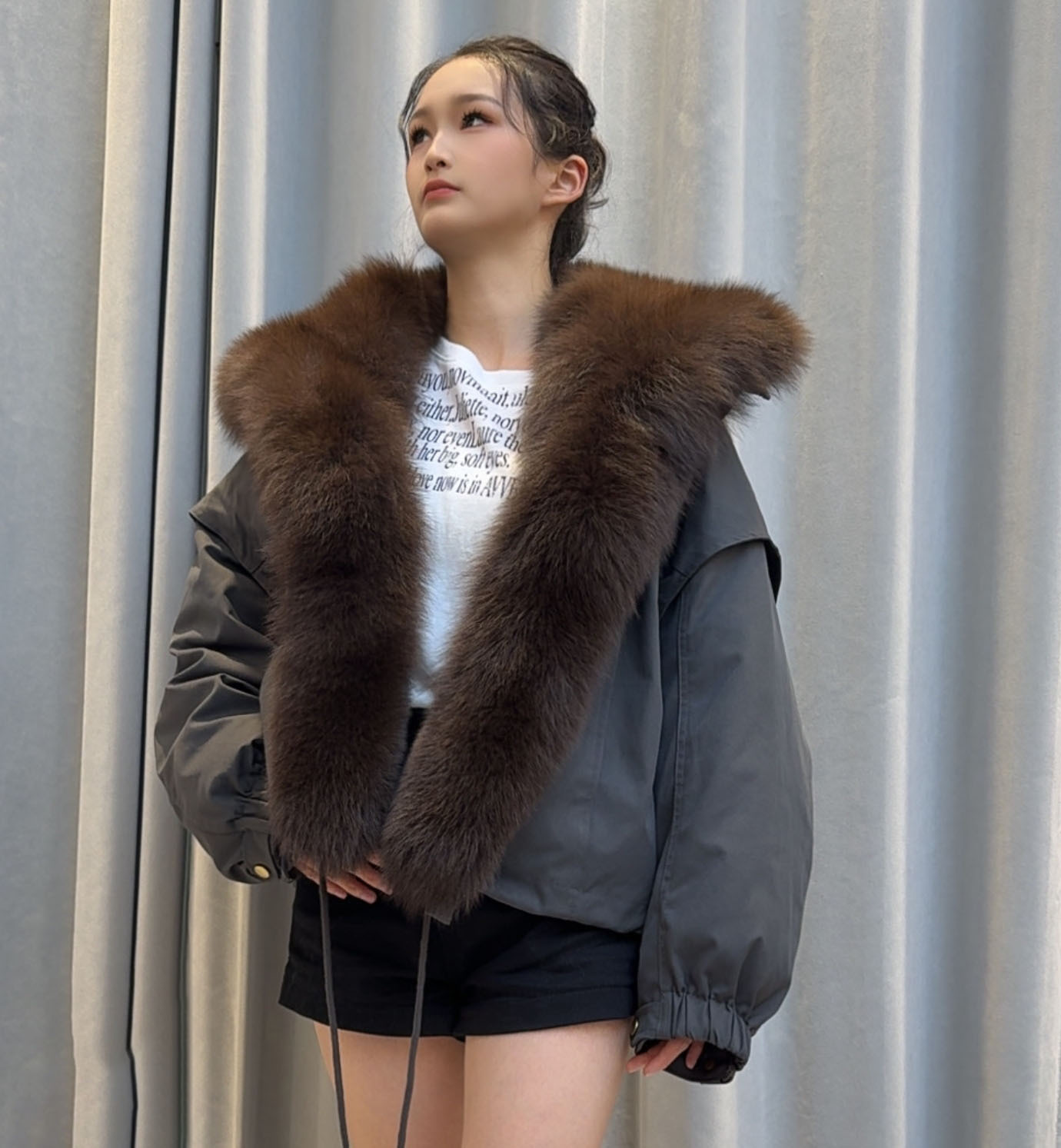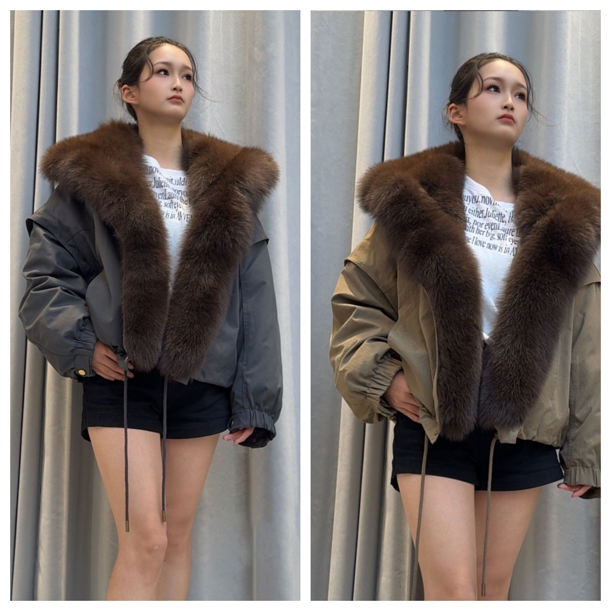 25 新しい外国貿易爆発ショート女性のリアルキツネの毛皮の襟ダウンジャケット肥厚スリムウエストファーダウンジャケット