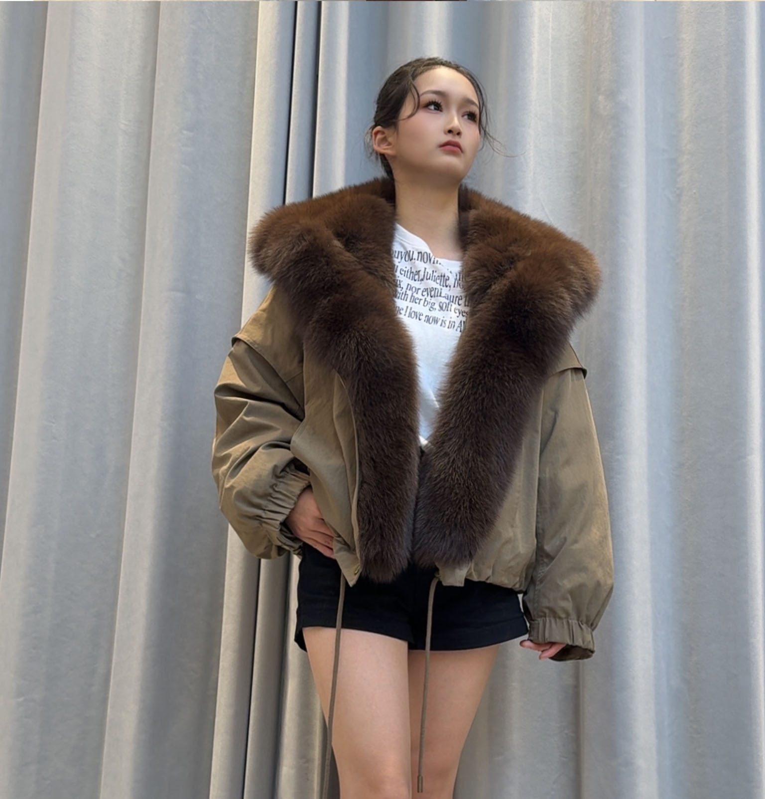 2025年新款90白鸭绒冬装超大狐狸毛领气质保暖羽绒服派克服外套女