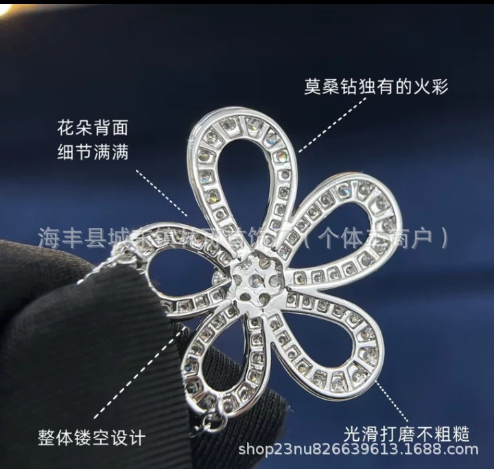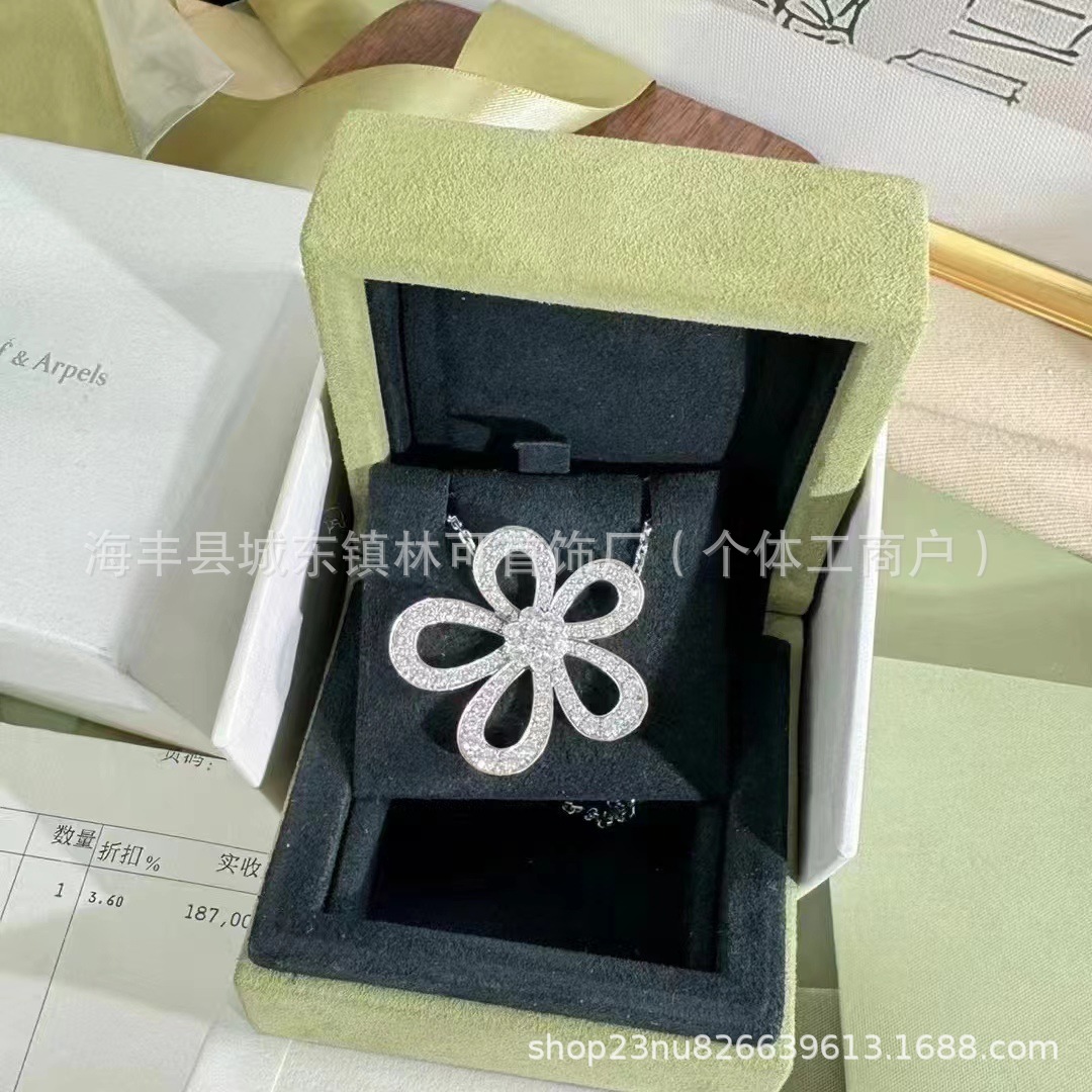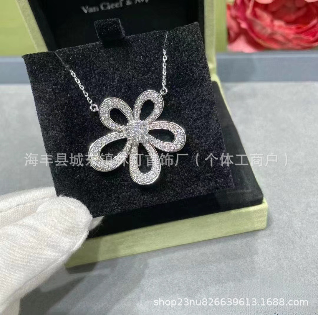 梵家四叶草大花满钻项链镂空太阳花镶钻花瓣百搭女士吊坠锁骨链