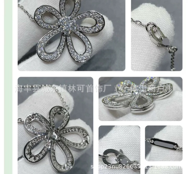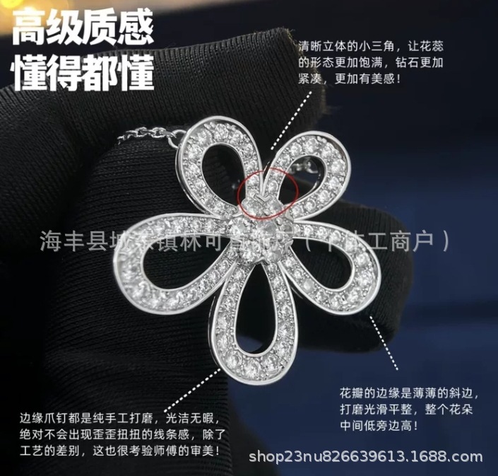 高品質V金布契拉ti四葉草透かし彫りイタリア満ドリル花ネックレス女性ペンダント生放送ソース