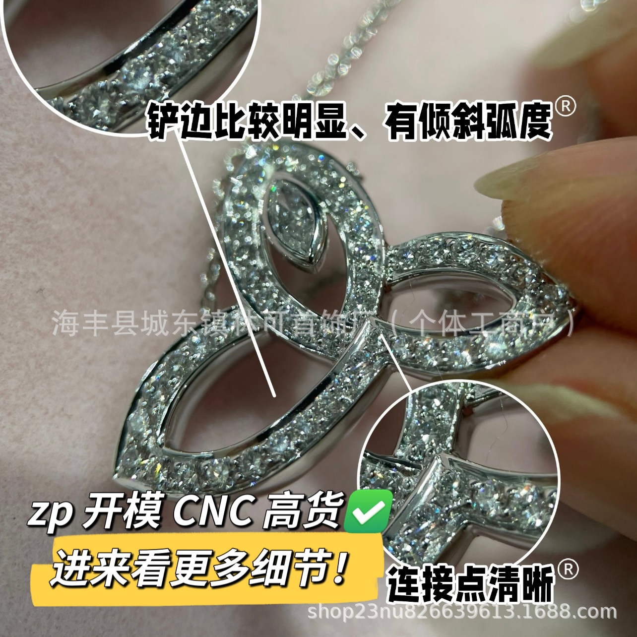 V金尚美交叉白贝母项链镶钻手链S925银18k玫瑰金CNC精雕链条