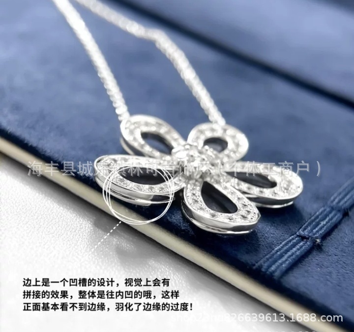 梵家高バージョン蝶ネックレスV金ファッション百合白貝母鎖鎖粉ドリル厚金メッキCNCセイコー