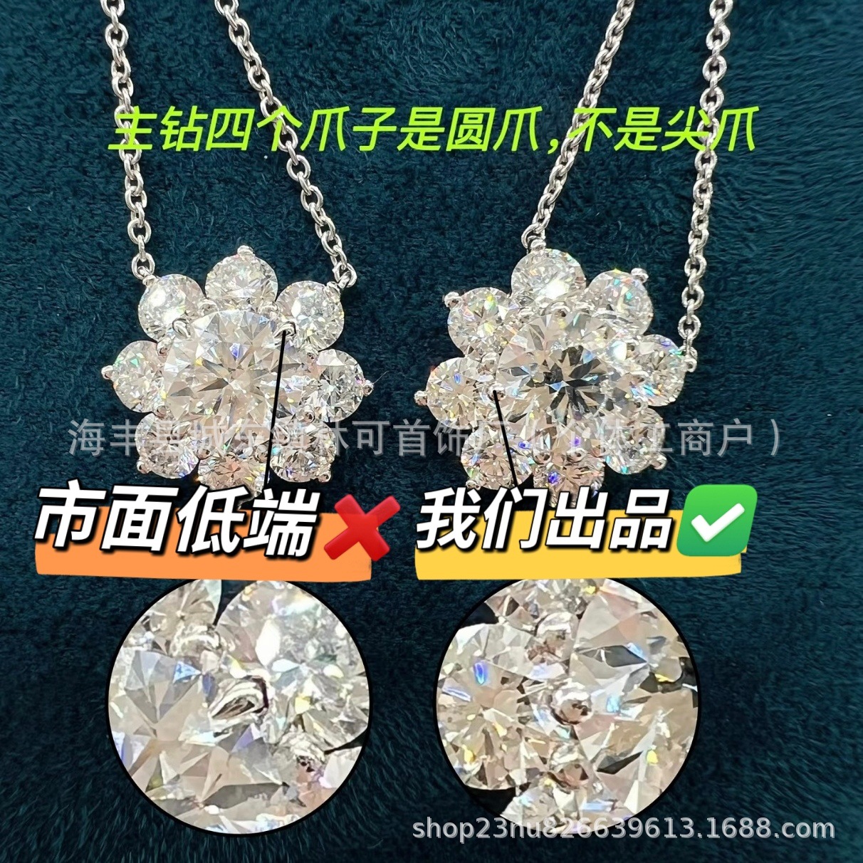 V金高版本海瑞H.W太阳花项链高级满钻吊坠轻奢八花瓣雪花女锁骨链