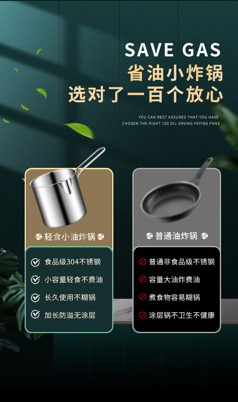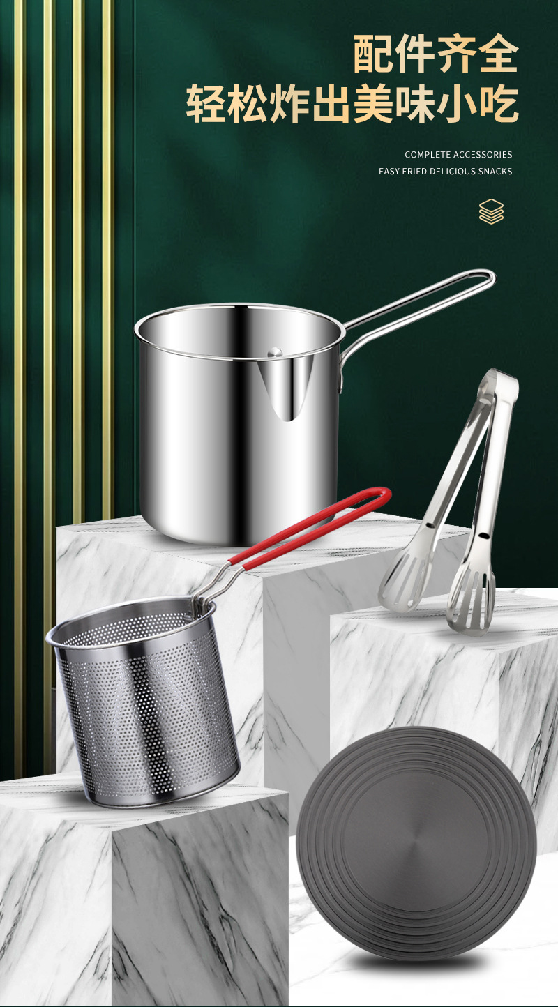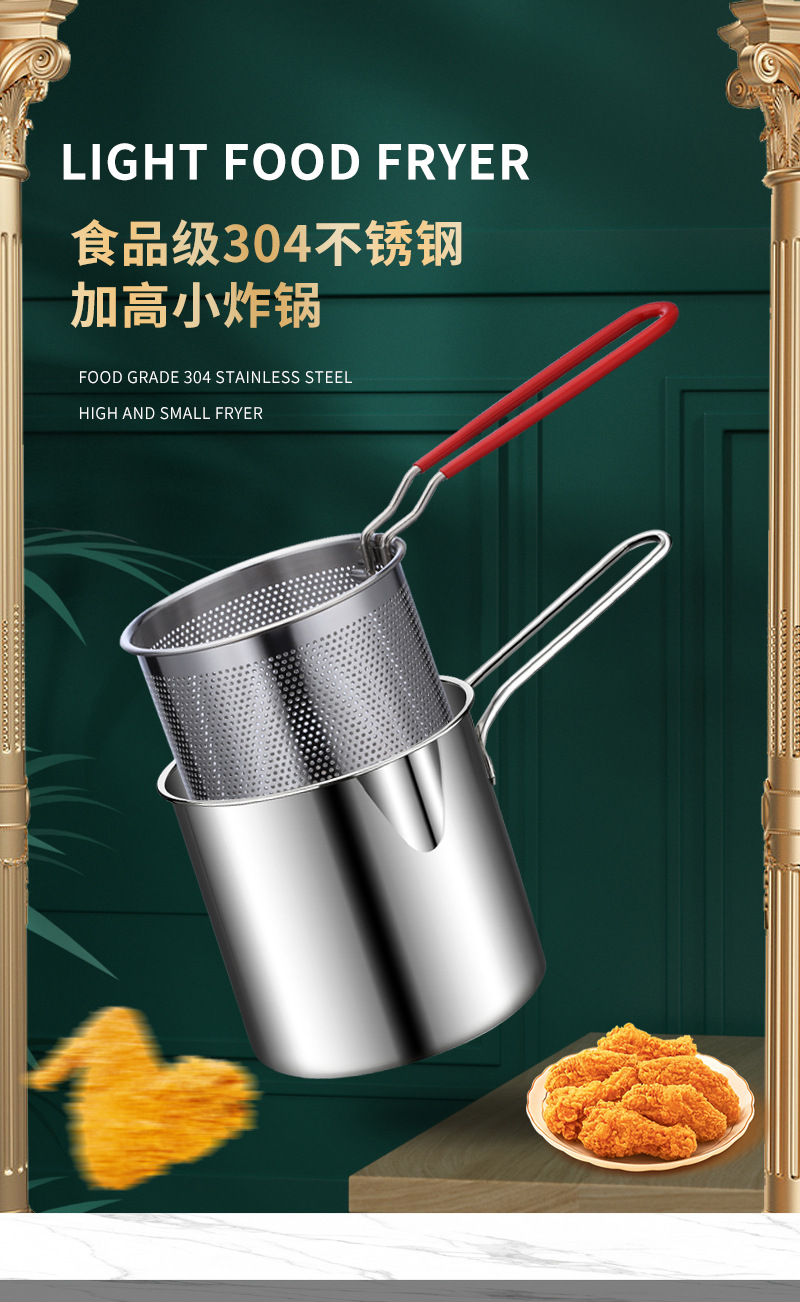 跨境不锈钢油炸锅家用迷你炸锅厨房省油深锅带炸篮小型小炸锅代发