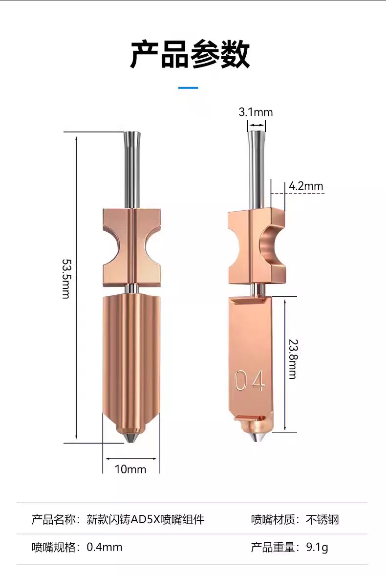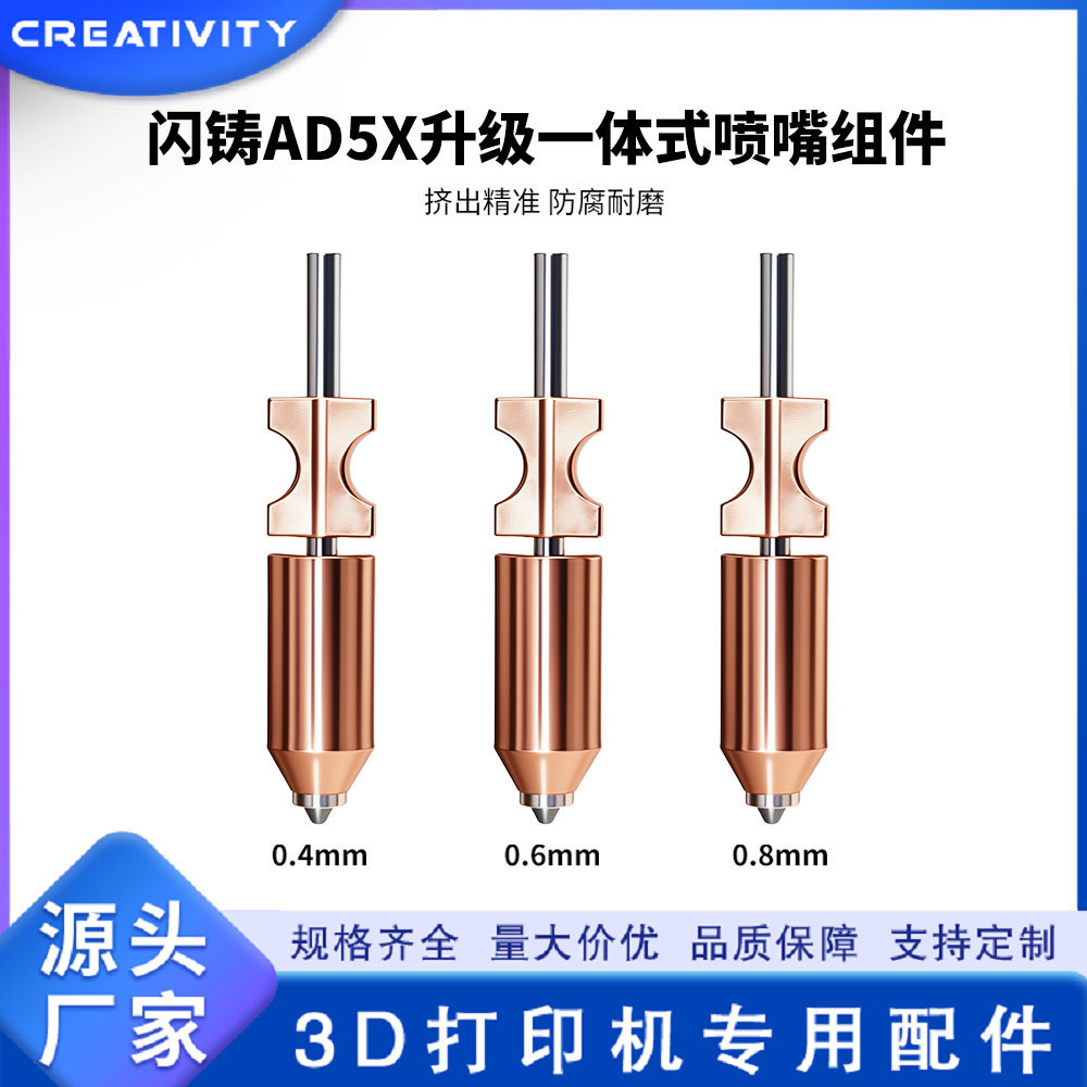 闪铸AD5X升级款一体硬化钢喷嘴组件耐高温快拆喷头3D打印机配件