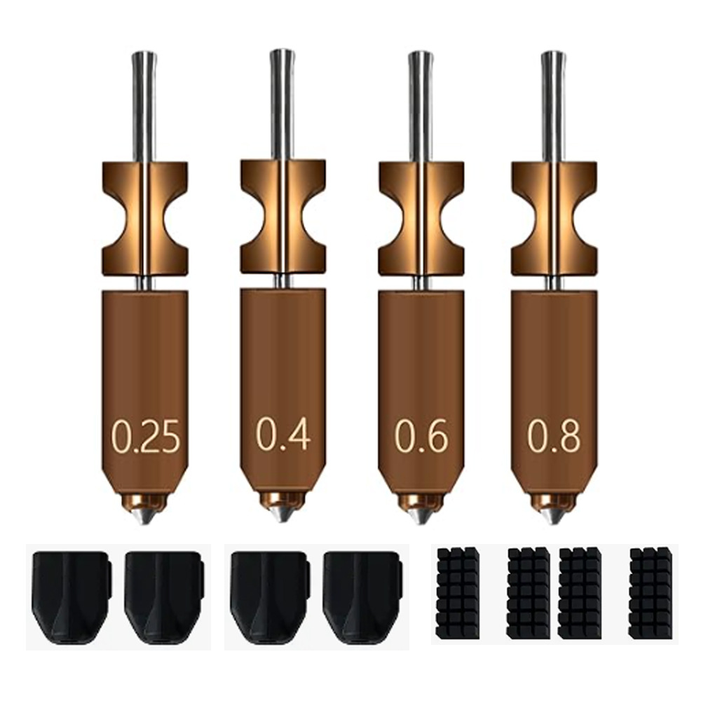 规格 AD5X 0.25mm 一体喷嘴喉管,AD5X 0.4mm 一体喷嘴喉管,AD5X 0.6mm 一体喷嘴喉管,AD5X 0.8mm 一体喷嘴喉管,刷子1个,保护套1个