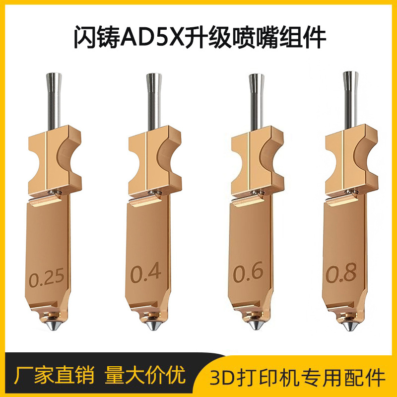 闪铸AD5X升级版硬化钢喷嘴组件耐高温高强度快拆喷头3D打印机配件