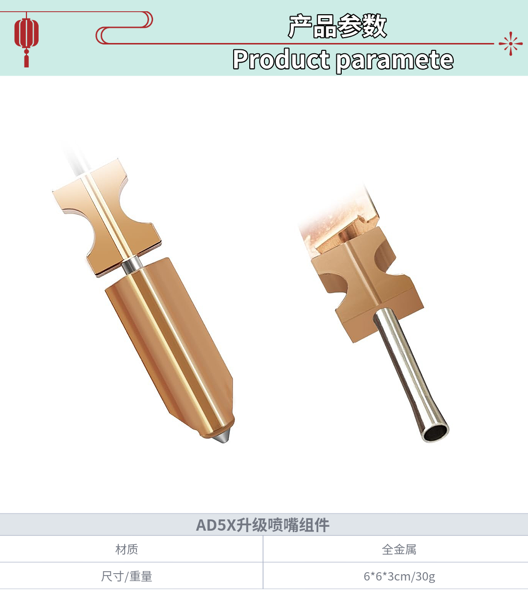 3D打印机配件 AD5X升级版硬化钢喷嘴组件耐高温高强度快拆喷头