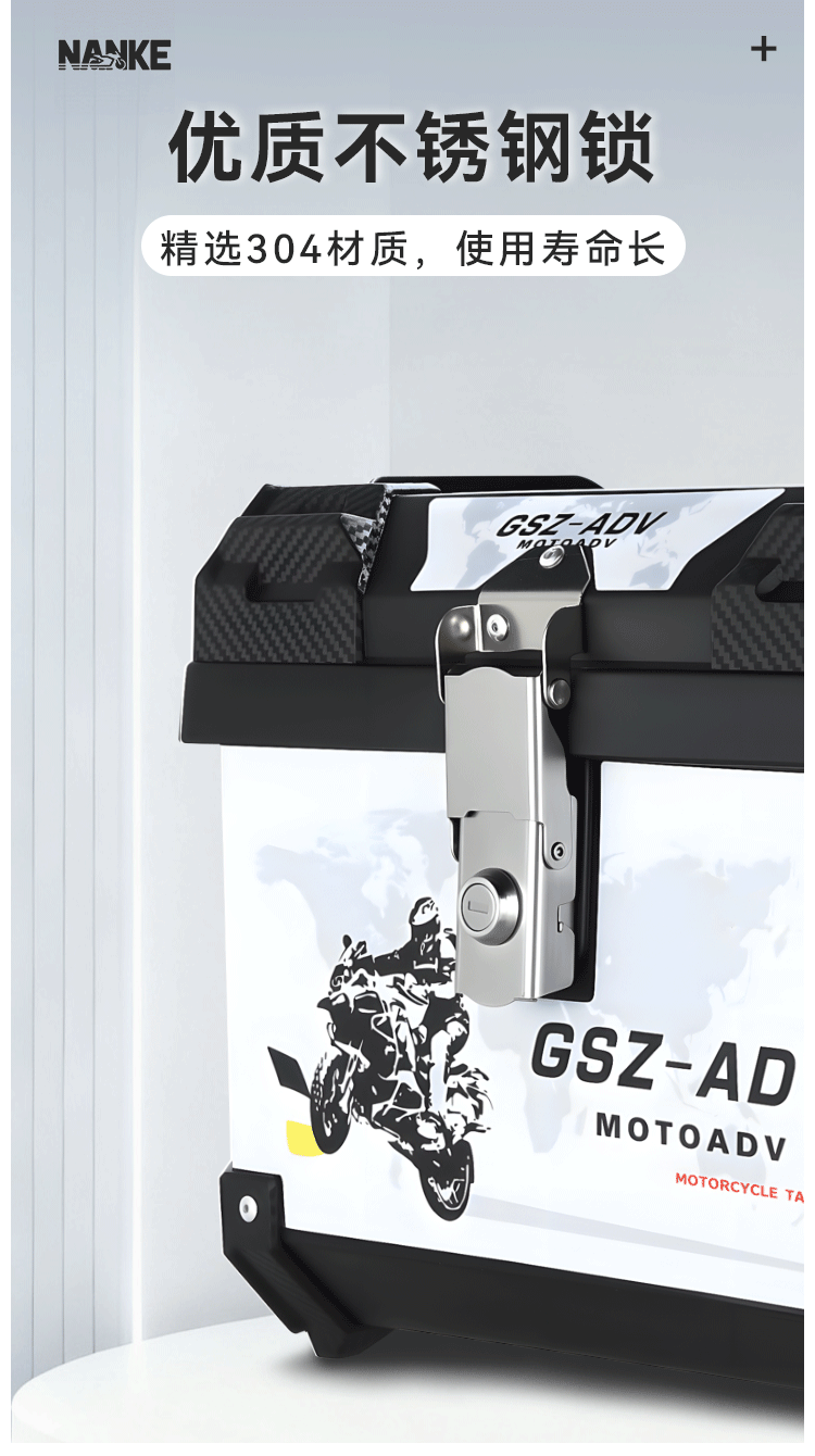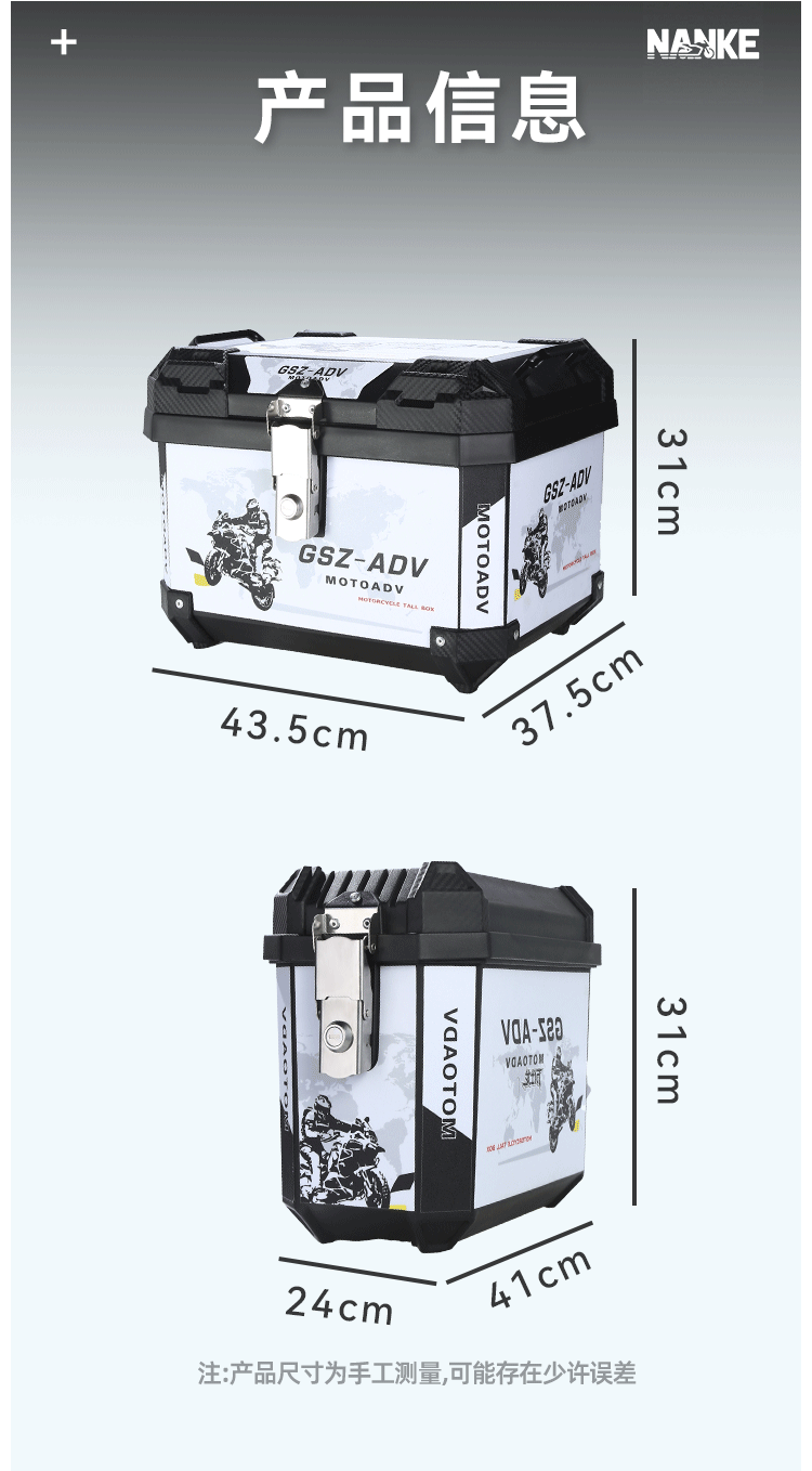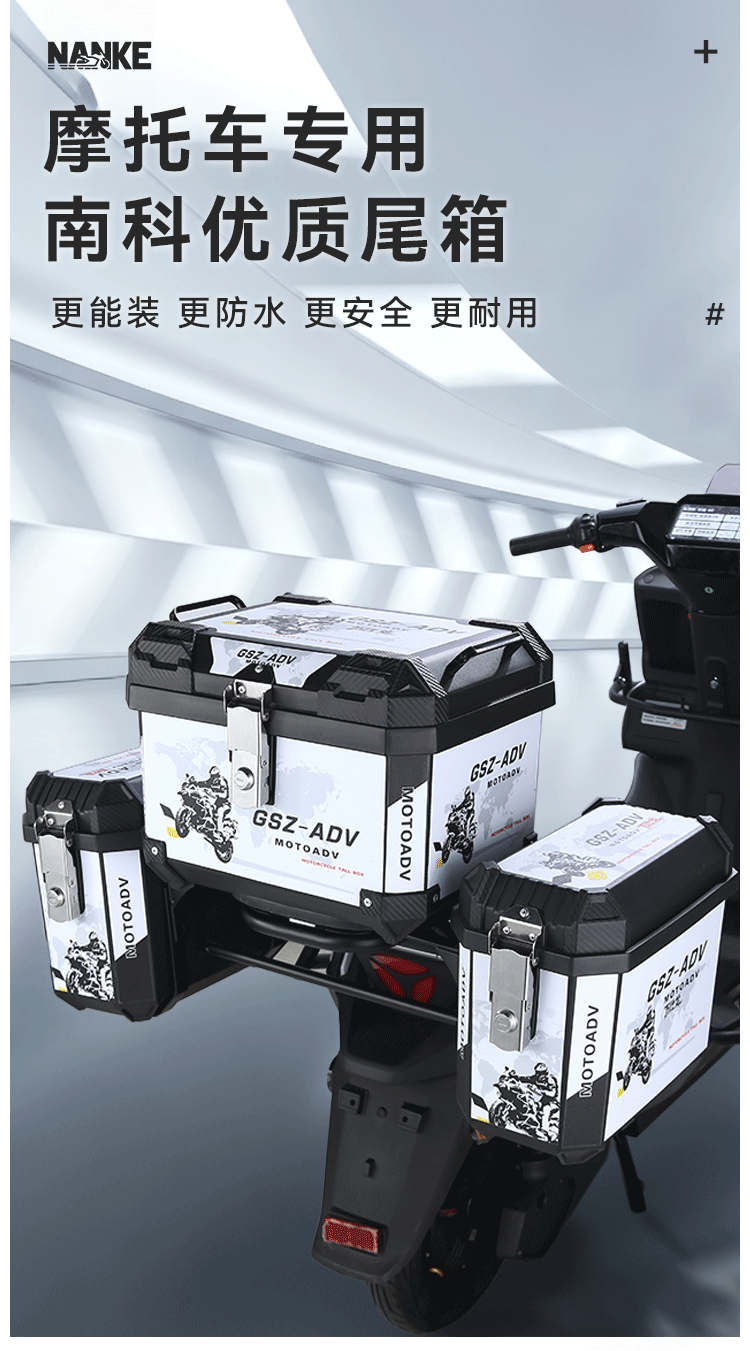 跨境爆款45升大容量非铝合金摩托车后备箱快拆工具箱电动车可拆卸