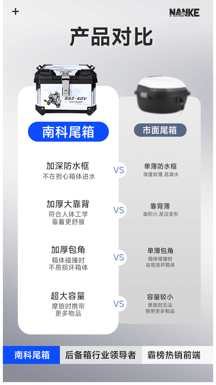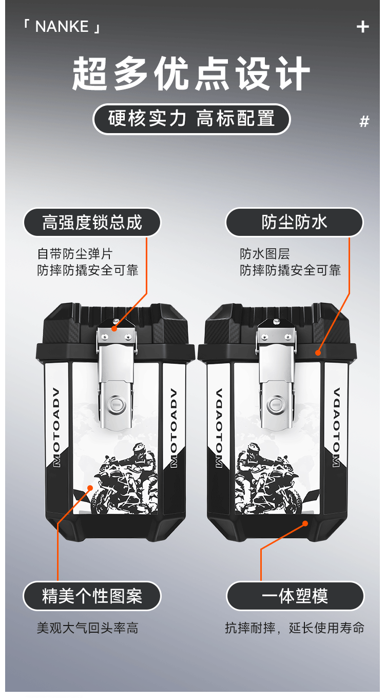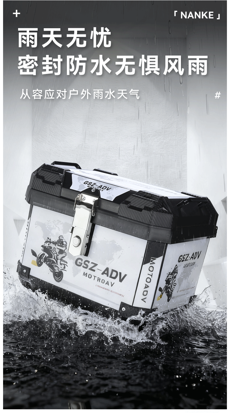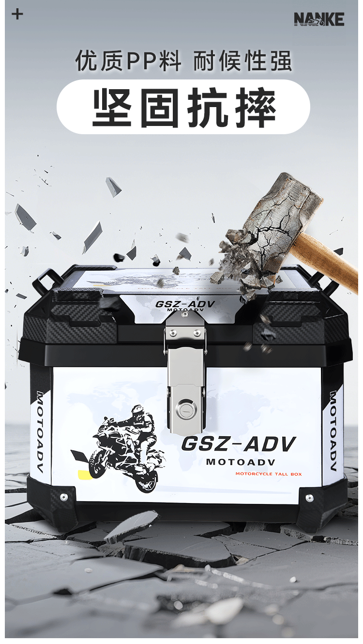 跨境爆款45升大容量非铝合金摩托车后备箱快拆工具箱电动车可拆卸
