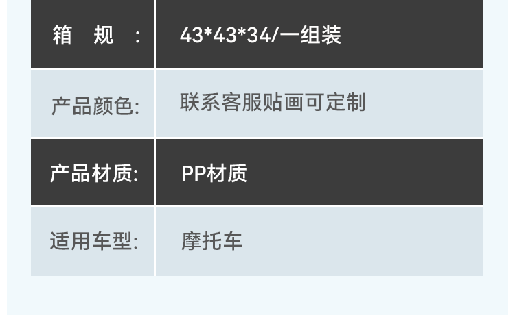 颜色 边箱一对-纯黑+内衬,边箱一对-纯黑+内衬+支架一套,边箱一对-ADV贴画+内衬,边箱一对-ADV贴画+内衬+支架一套,边箱一对-GS贴画+内衬,边箱一对-GS贴画+内衬+支架一套,边箱一对-白GS贴画+内衬,边箱一对-白GS贴画+内衬+支架一套,黑贴画+纯黑边箱一对,黑贴画+黑贴画边箱,白贴画+白贴画边箱,GS贴画+GS贴画边箱