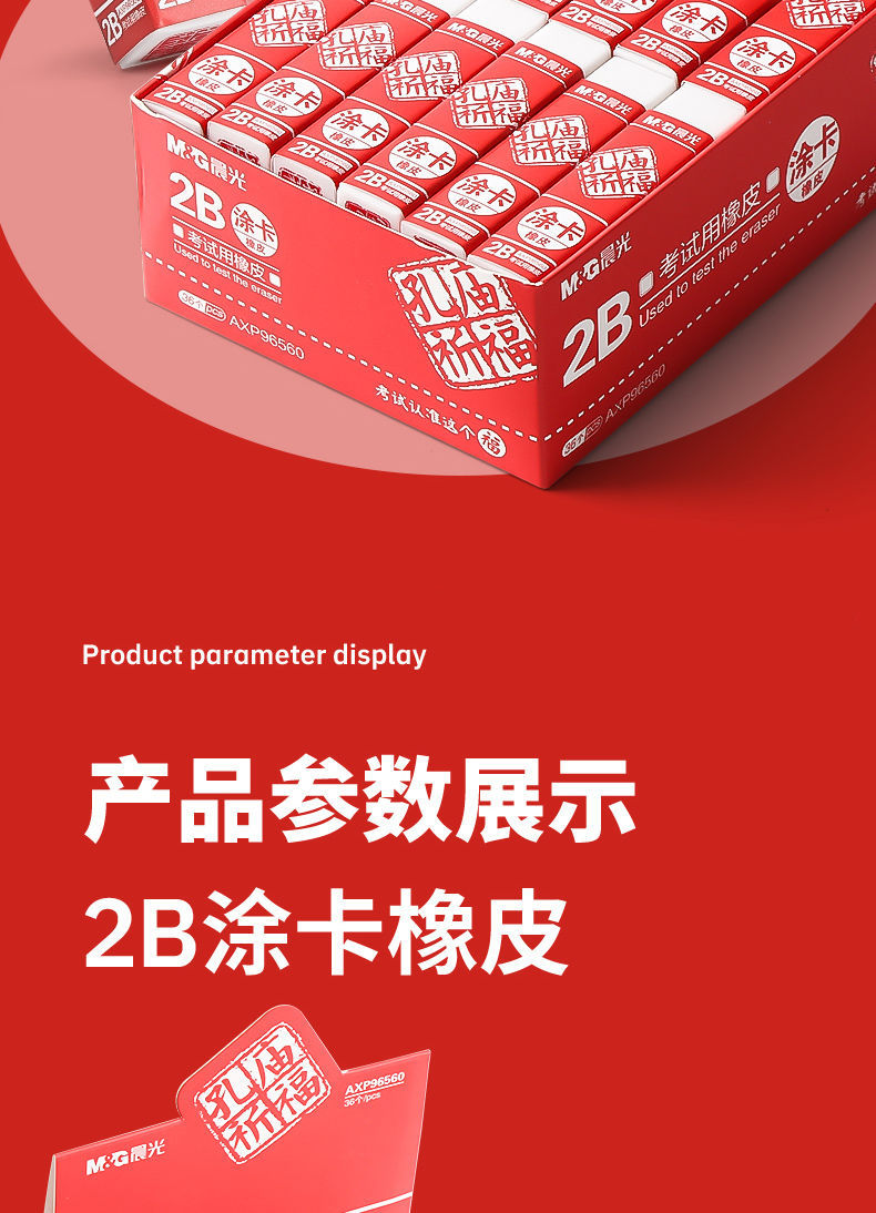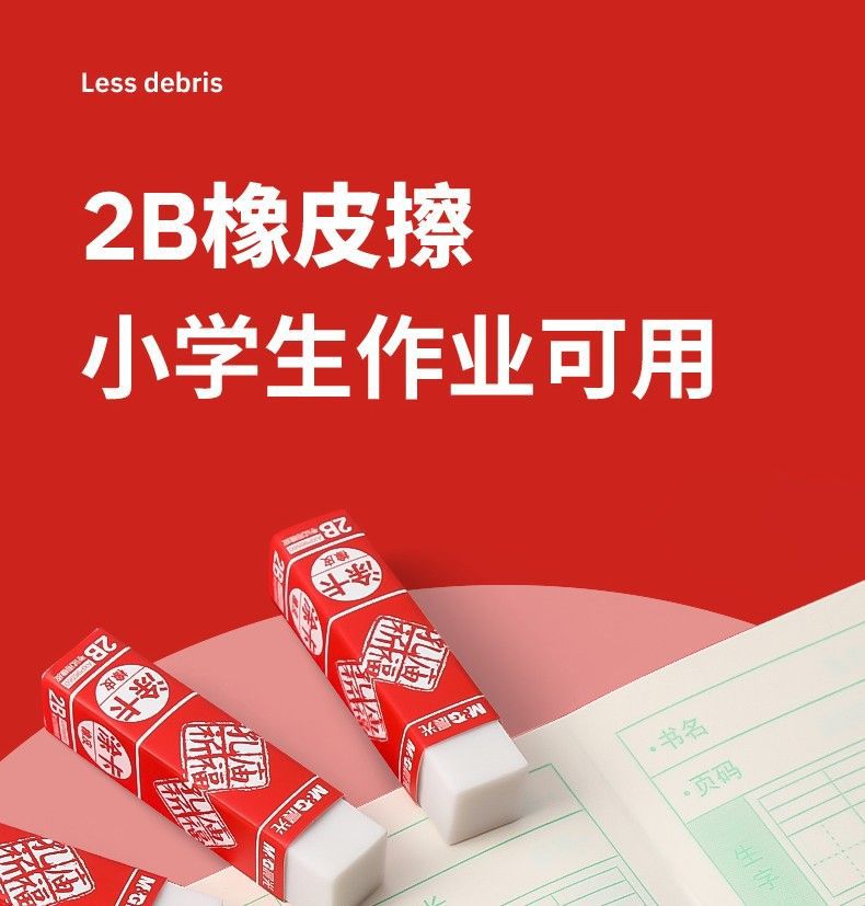 晨光孔庙考试专用2b橡皮不留痕无碎屑小学生专用橡皮擦AXP96560