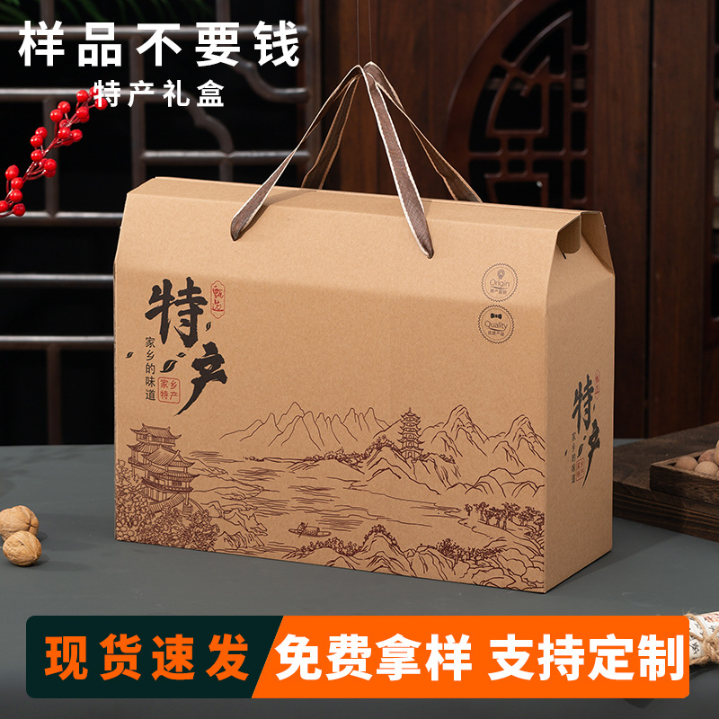 批发干果土特产礼品包装盒瓦楞手提年货礼盒通用纸箱定制熟食空盒