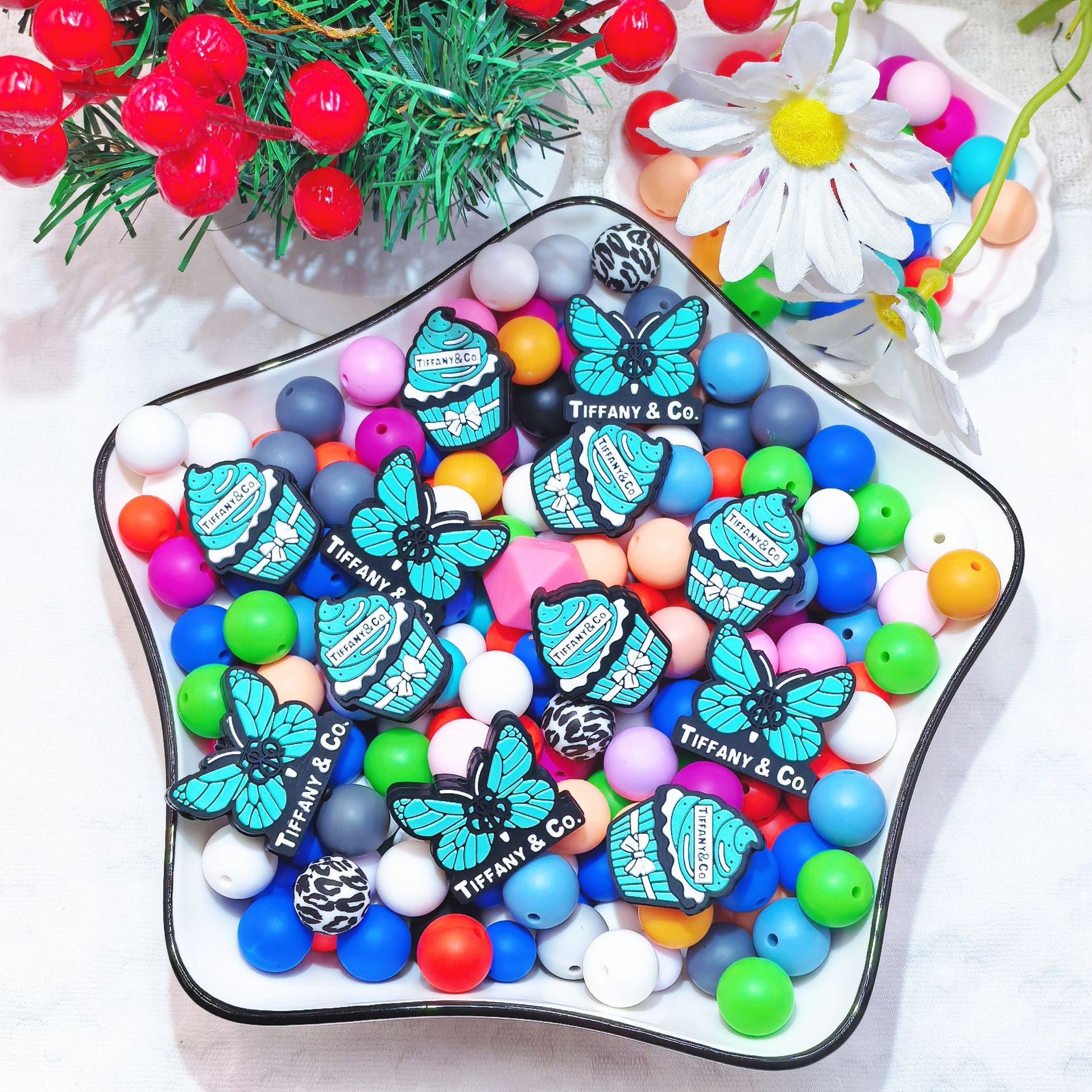 新款diy串珠笔散珠婴儿牙胶珠卡通时尚硅胶珠食品级硅胶珠子批发