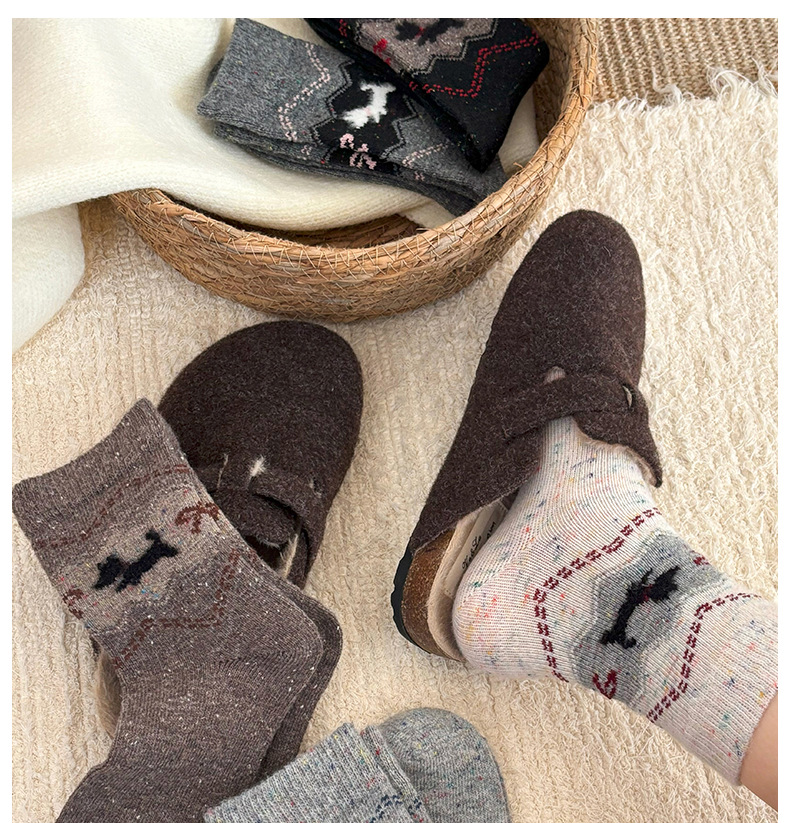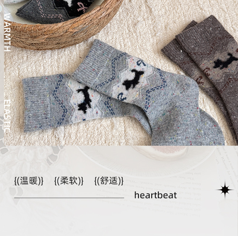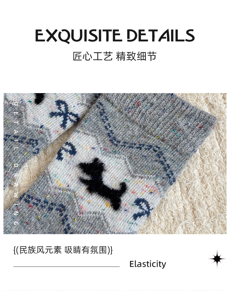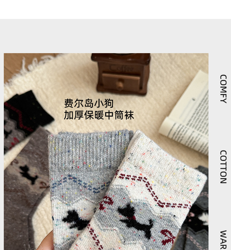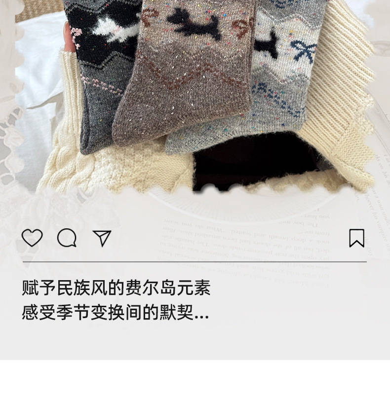 费尔岛中筒袜子女秋冬季加厚保暖针织袜秋季百搭女士堆堆袜批发