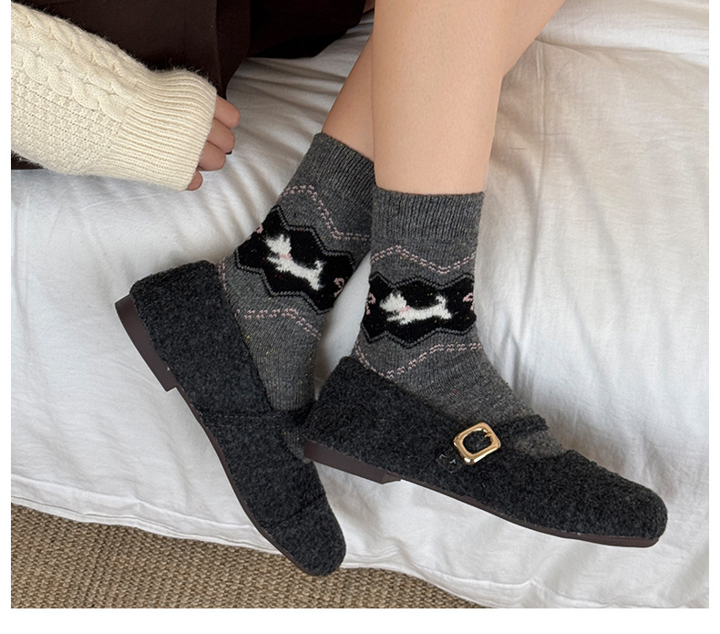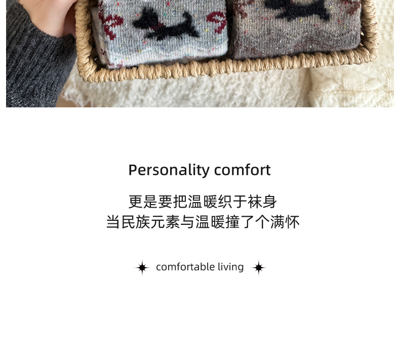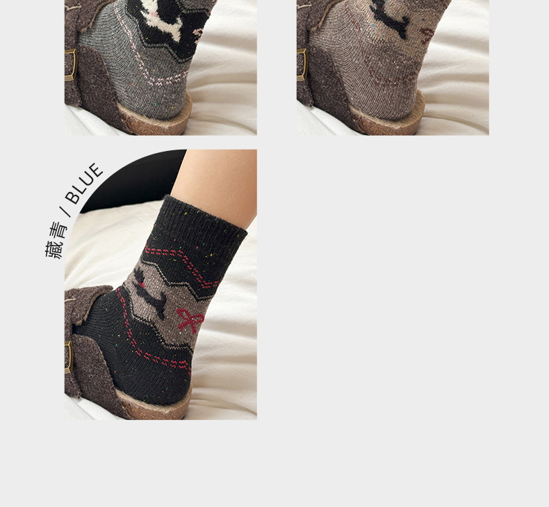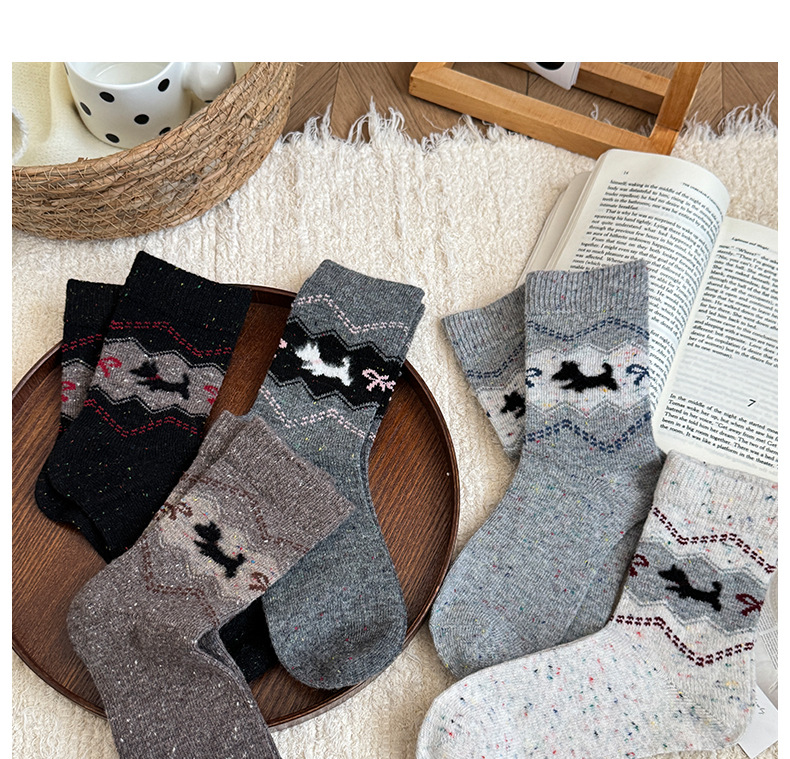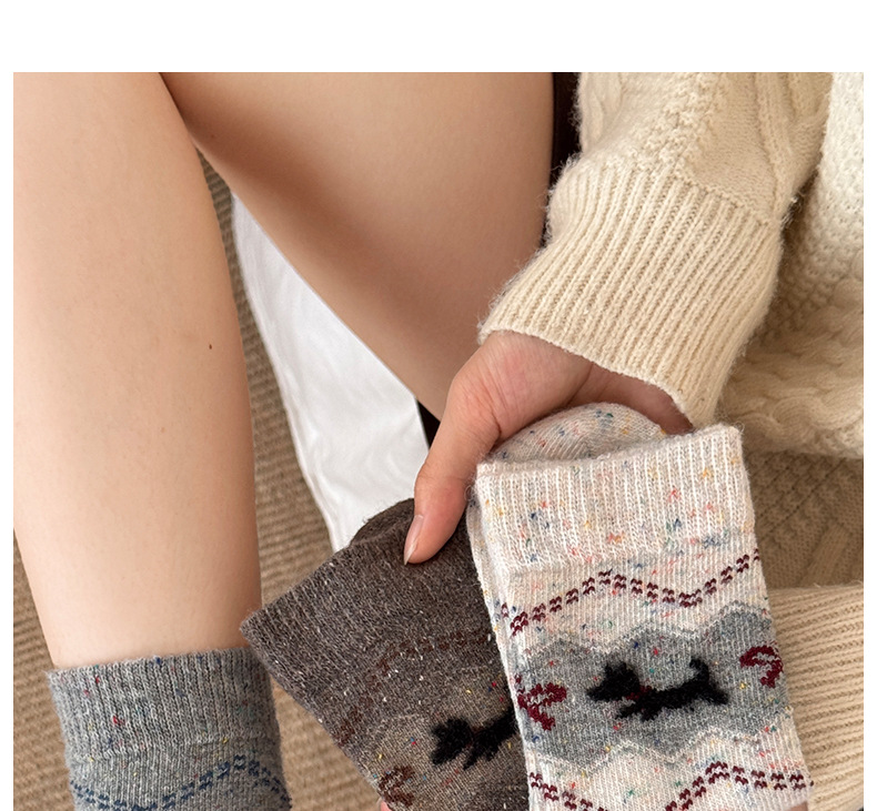 费尔岛中筒袜子女秋冬季加厚保暖针织袜秋季百搭女士堆堆袜批发