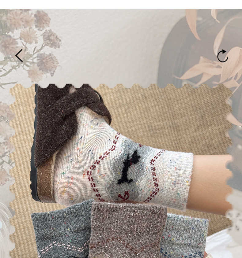 堆堆袜子女款秋冬季中筒袜复古miu系小碎花女袜子百搭棉袜诸暨袜