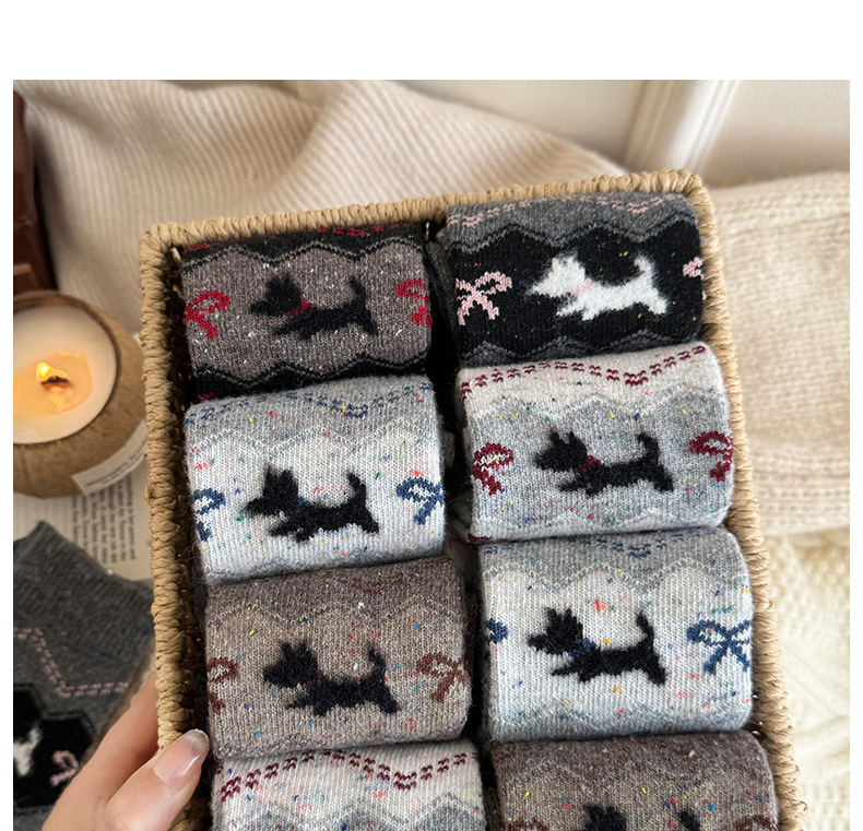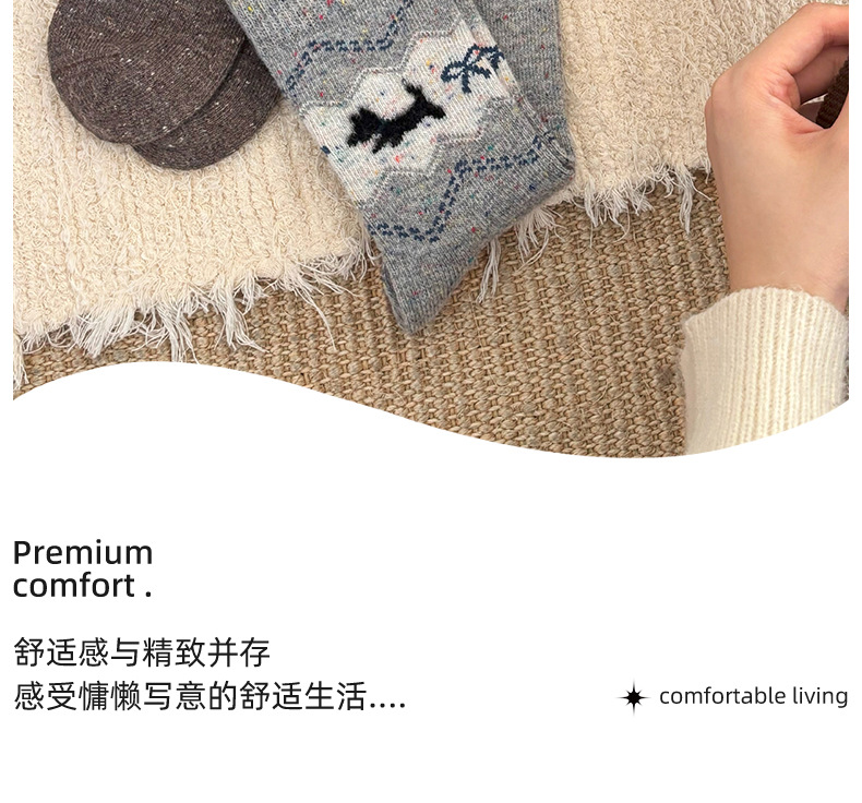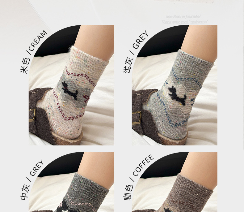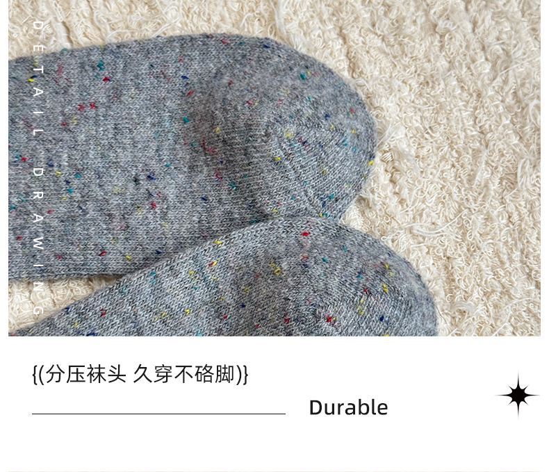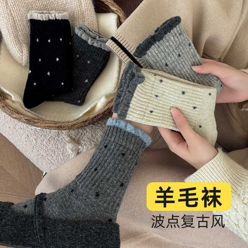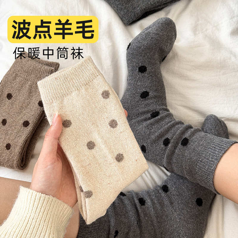 无骨羊毛袜子女秋冬加厚保暖灰色系波点堆堆袜咖色复古百搭中筒袜