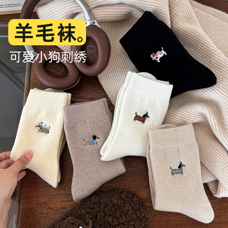 羊毛袜加厚保暖女士堆堆袜秋冬双罗口中筒袜冬季百搭女士袜子