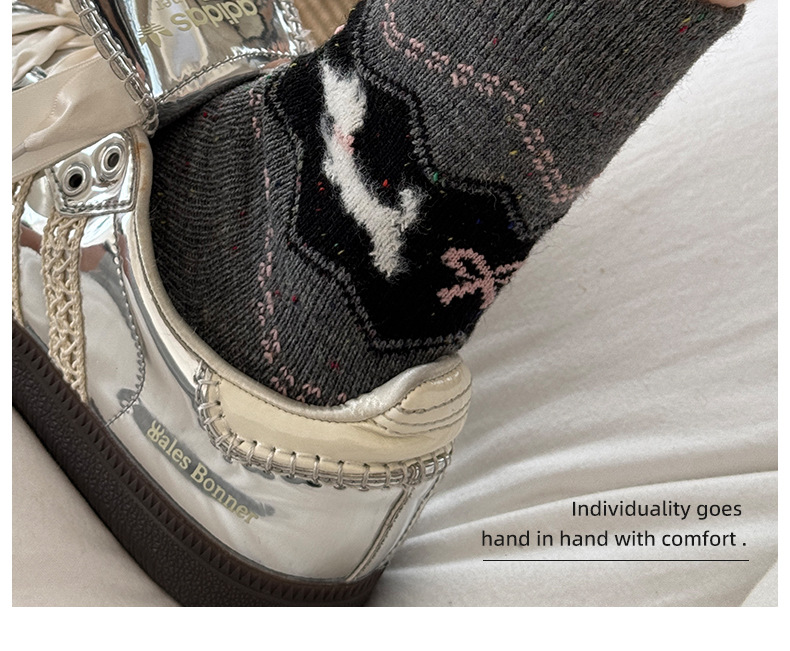 蝴蝶结袜子女中筒袜秋冬棉袜2025新款潮日系长袜刺绣学院风堆堆袜