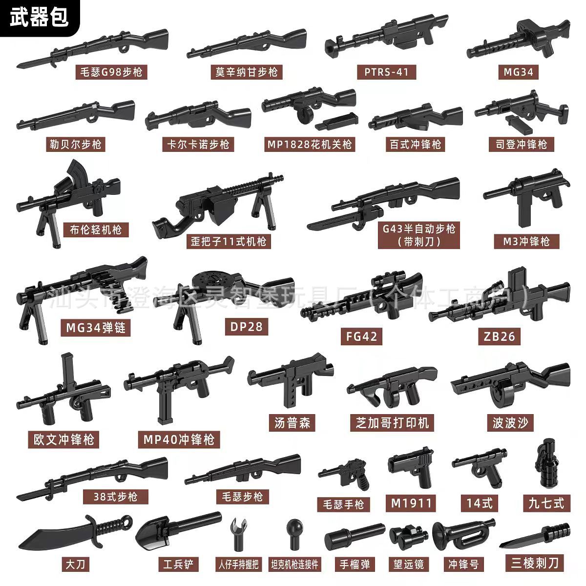 兼容乐高二战小人仔玩具通用武器包武器片士兵军事配件积木拼装