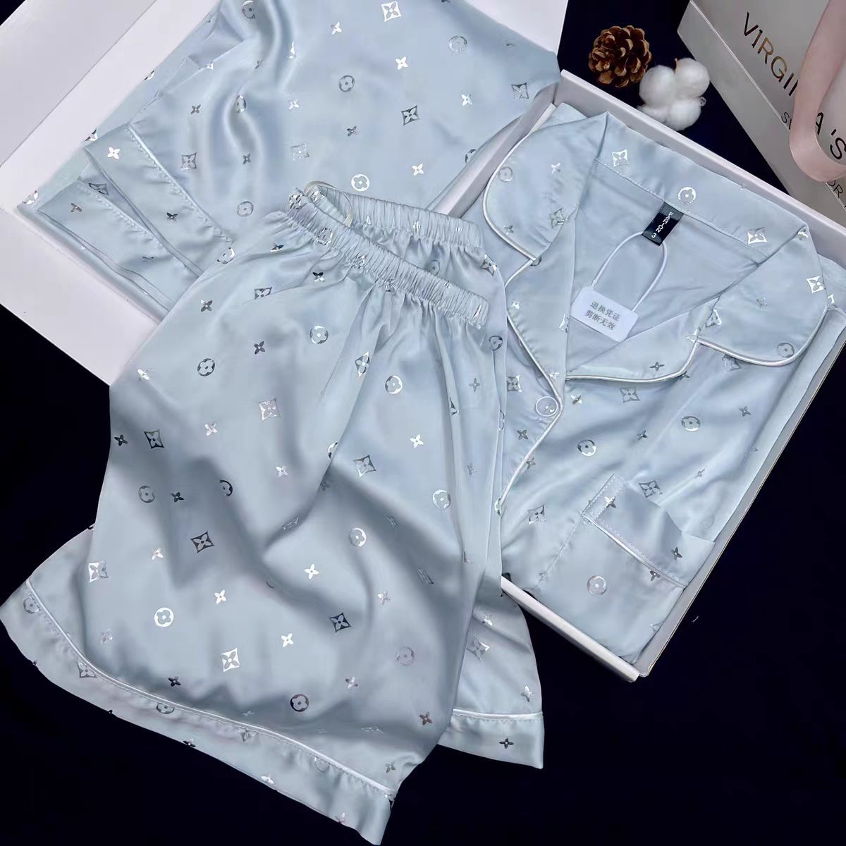 小香風パジャマ女夏軽贅沢白色高級感薄い半袖半ズボン柔らかい光氷糸ホームウェアセット