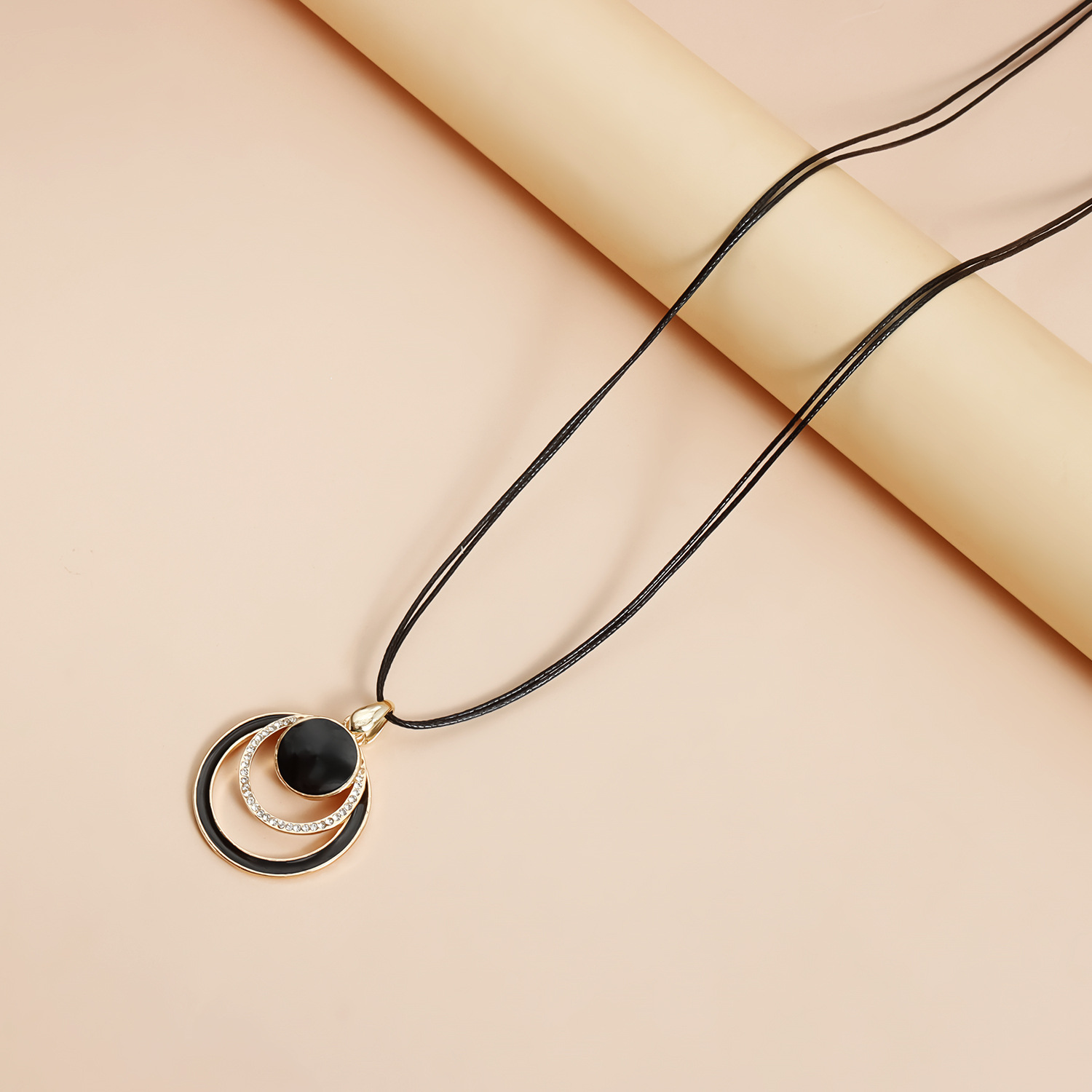 ヨーロッパとアメリカのクロスボーダージュエリーファッションライトラグジュアリーインスタイルロングプルアウト幾何学ディスク滑らかなネックレスメタリックネックレス