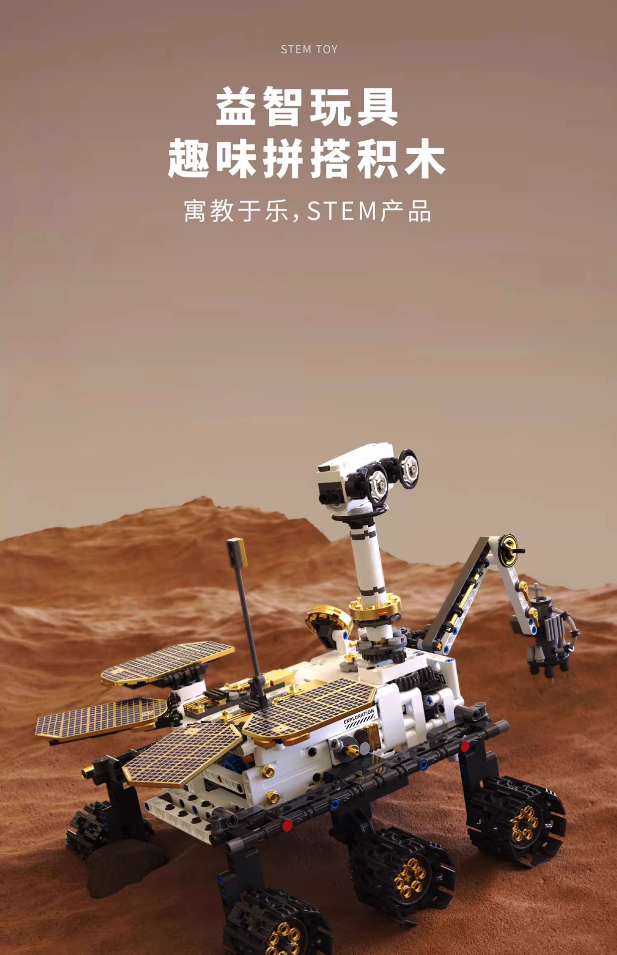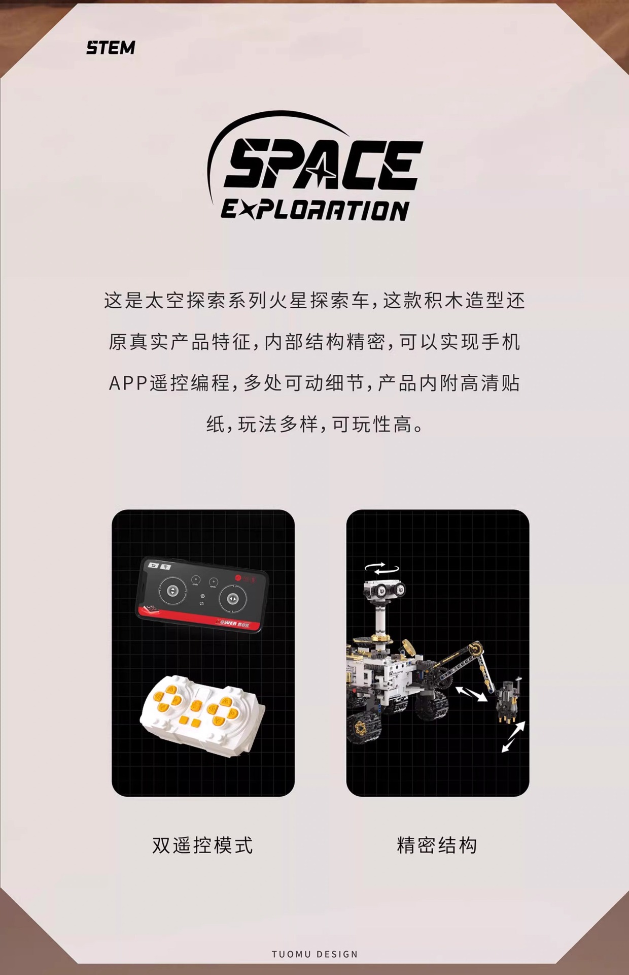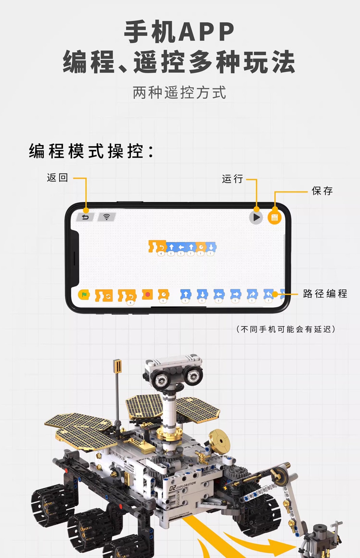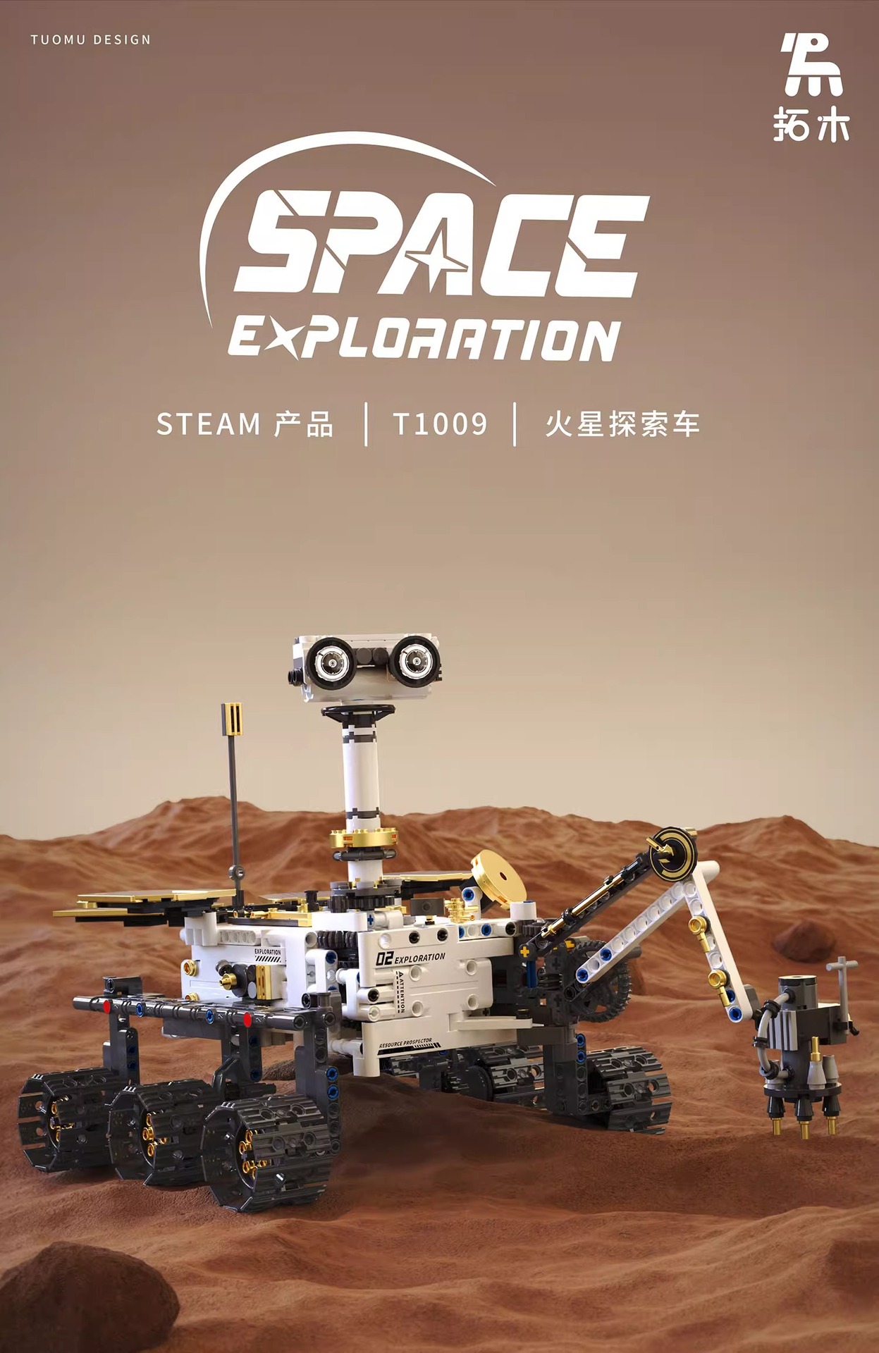 拓木T1009遥控编程火星探索车积木STEAM科教儿童益智玩具太空跨境
