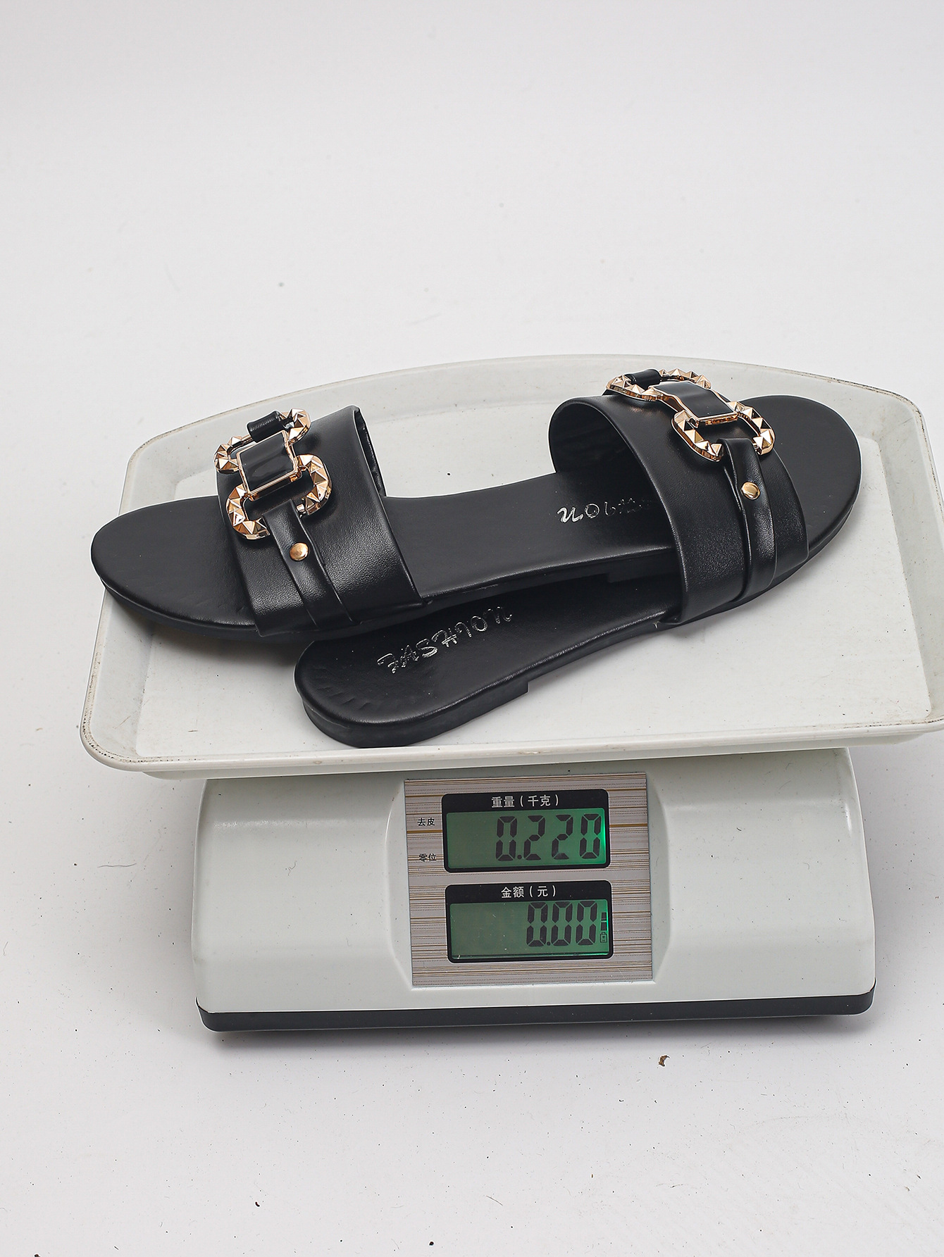 跨境女鞋批发新款时尚拖鞋经典气质百搭纯色金属装饰圆头平底凉鞋