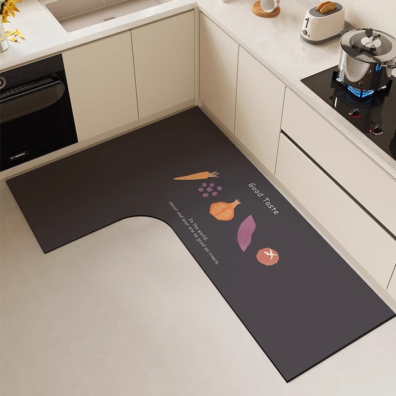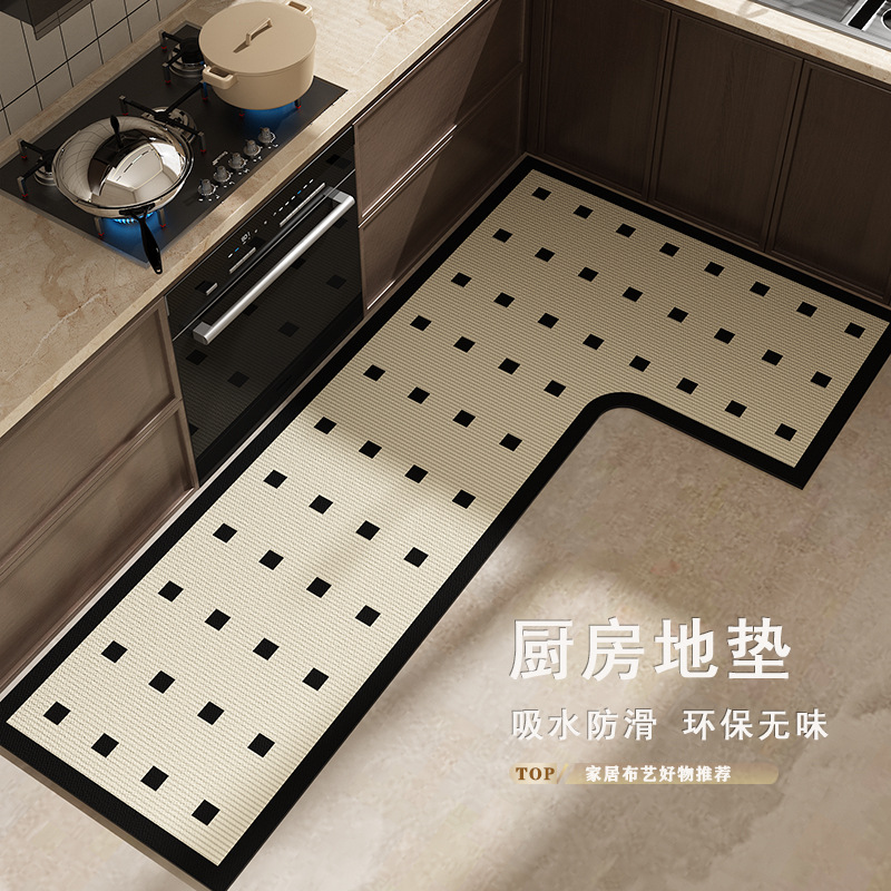 厨房地垫L型简约高级感耐脏耐磨硅藻泥地垫吸水吸油防滑餐厅地垫