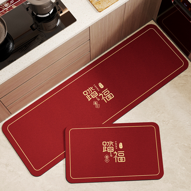 厨房地垫2026新款红色喜庆家用餐厅地垫吸水吸油防滑餐厅地垫批发