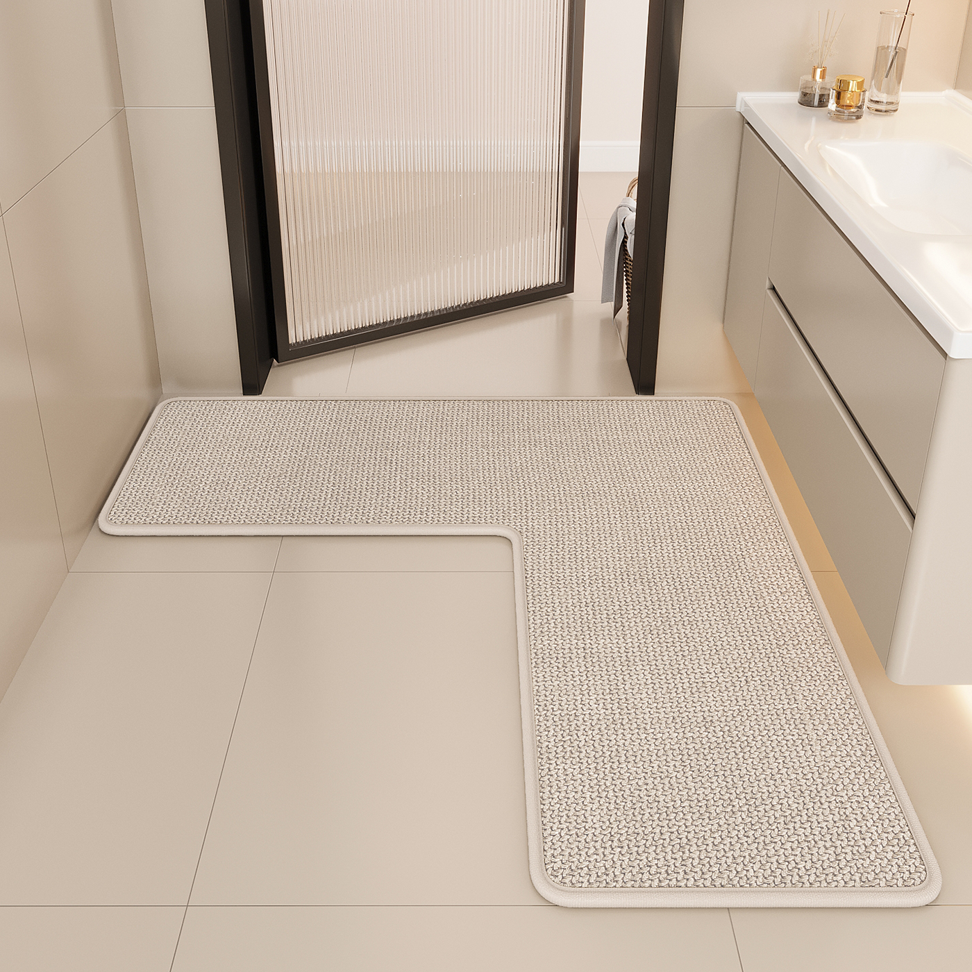 L型转角浴室地垫吸水防滑亚麻编织地垫家用卫生间进门口耐脏地垫