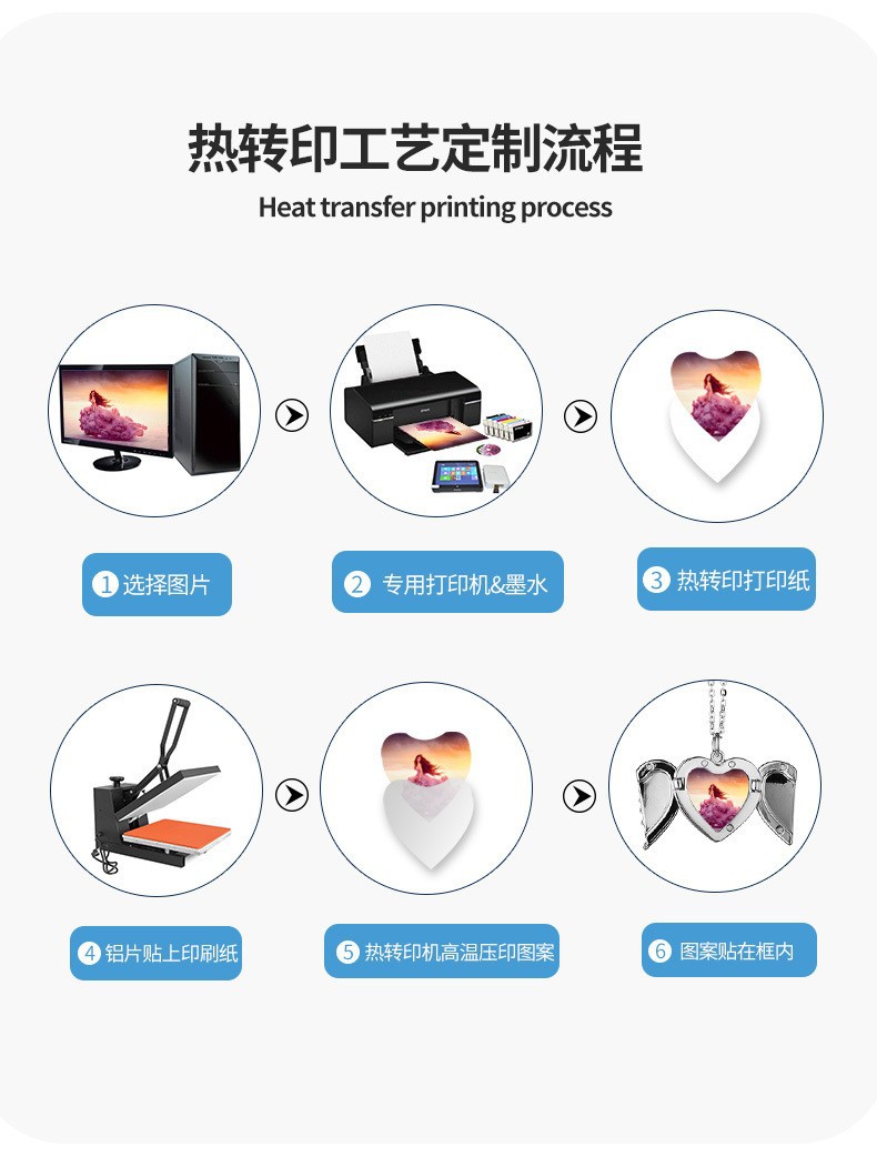 人気の空白熱転写ハート型ステンレスカップルペンダントネックレス、クロスボーダー丸型フォトボックスネックレス