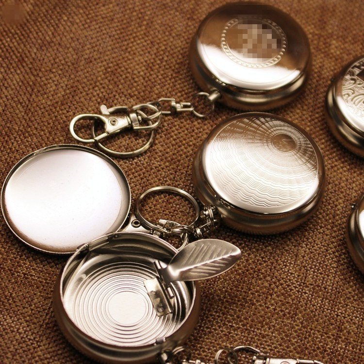 ミニ灰皿金属小灰皿型ポータブルヨーロッパ式円形環境保護灰皿 (キーホルダー付き)