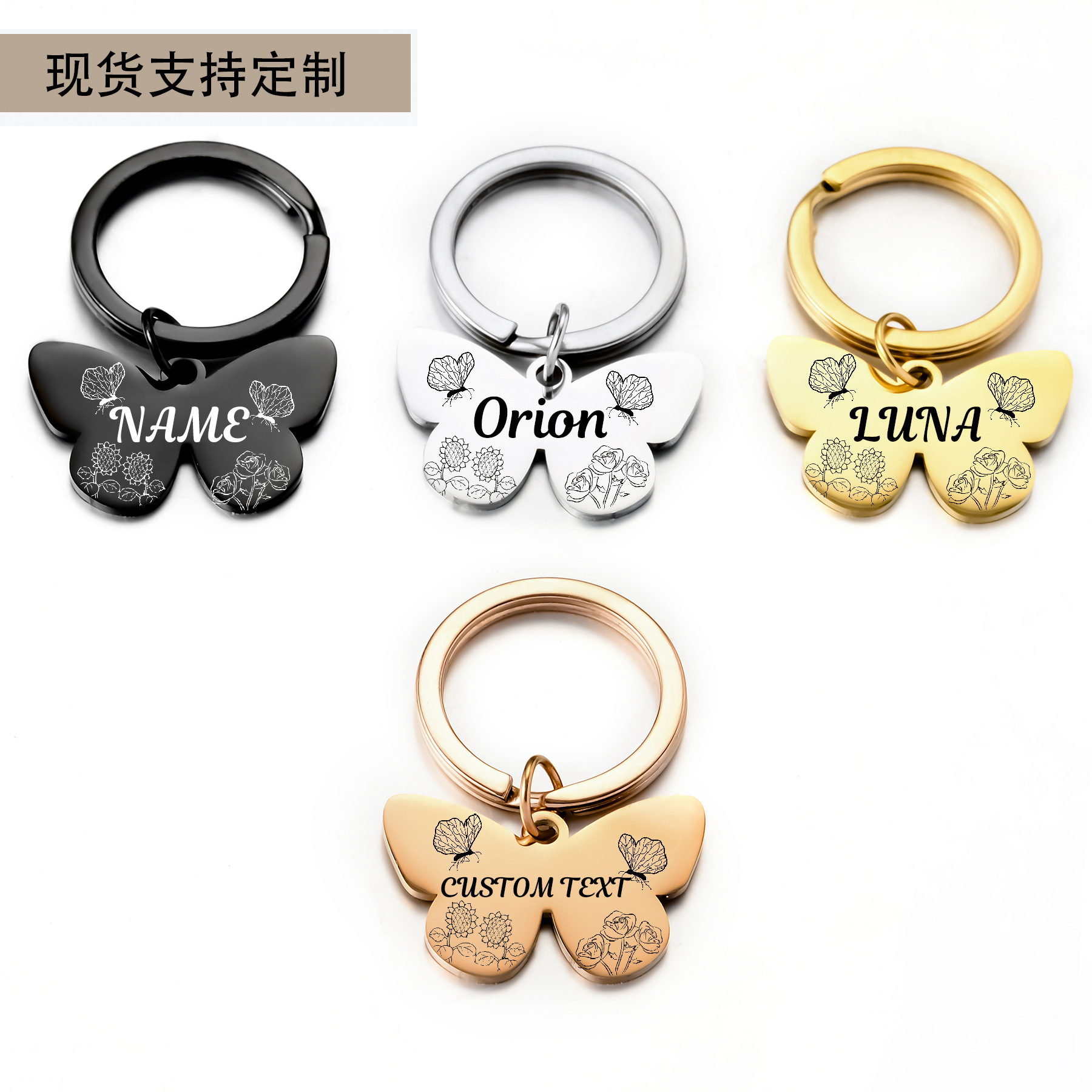 クロスボーダー热い贩売パーソナライズされたペットタグ蝶ペンダントステンレス钢の金属キーホルダーレーザー雕刻ストラップ