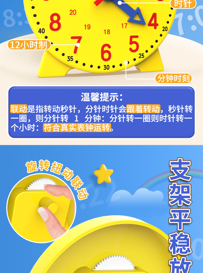 钟表模型幼儿园儿童学习认识时间教具一二年级小学生用时钟面表盘