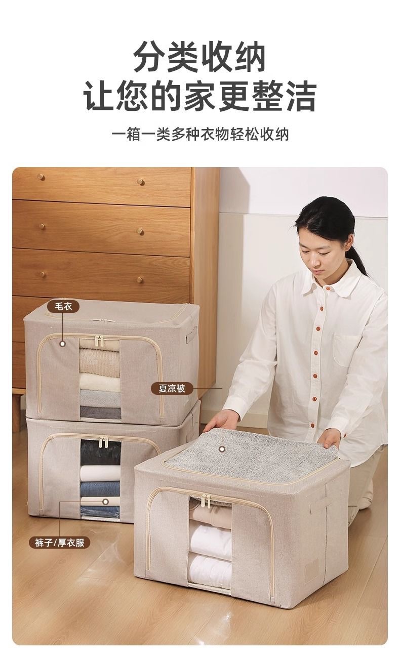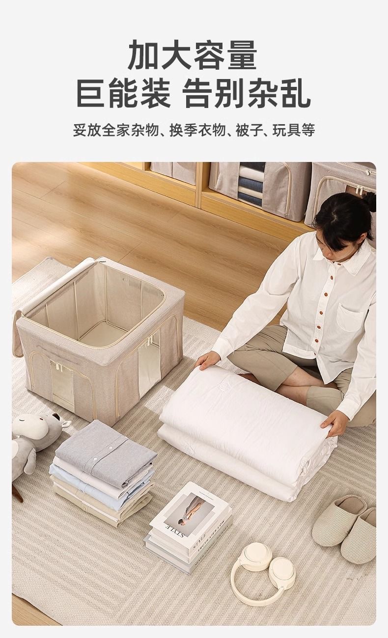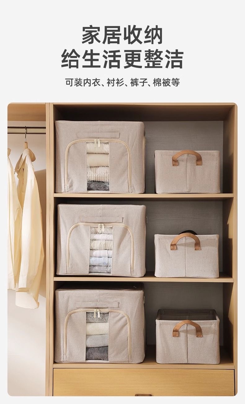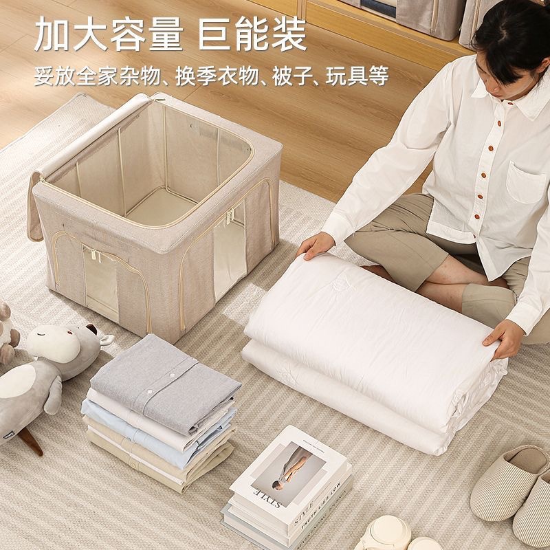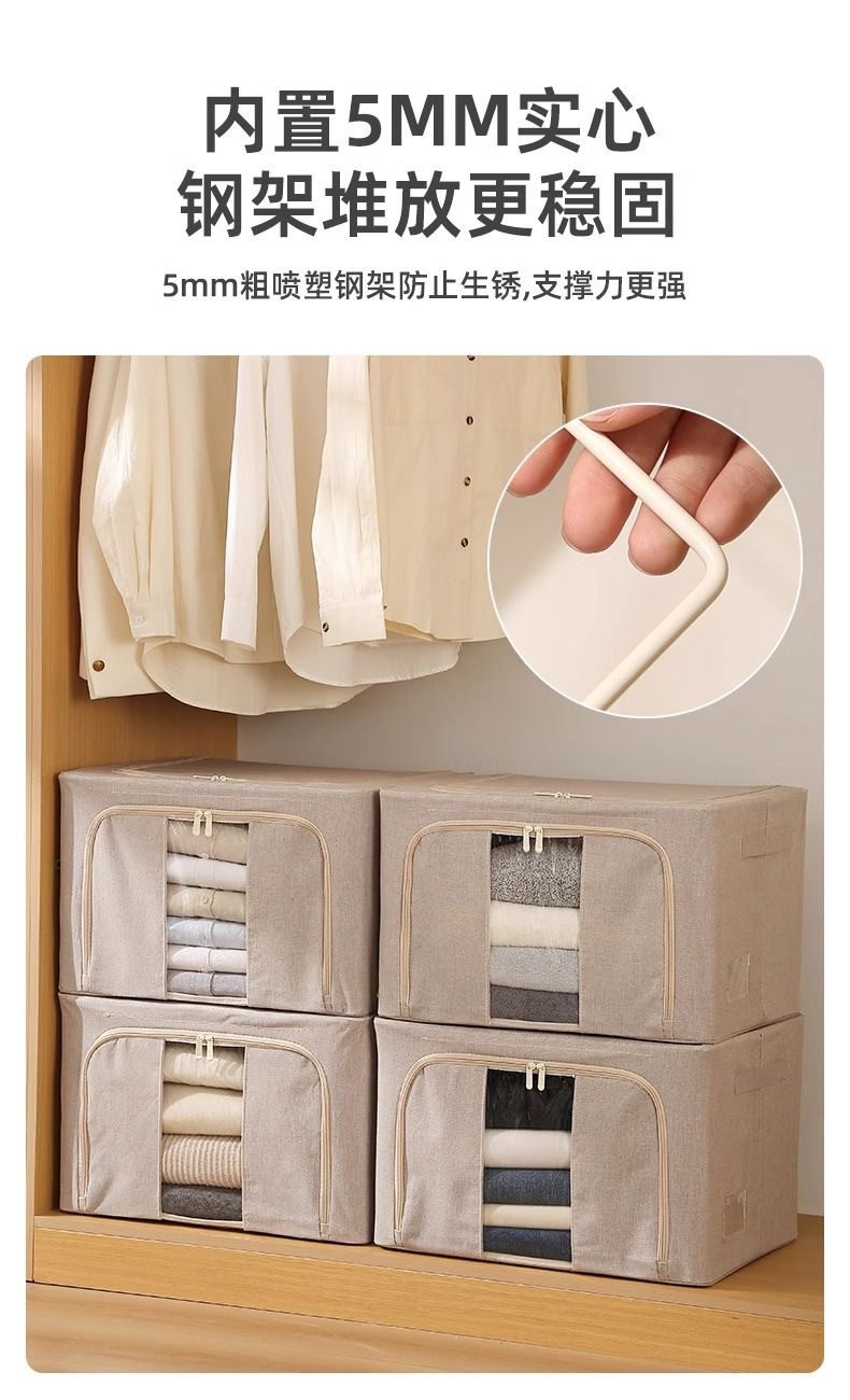 PP板喷塑加粗5.0钢架天山棉麻收纳箱整理师专用家居衣物收纳棉麻