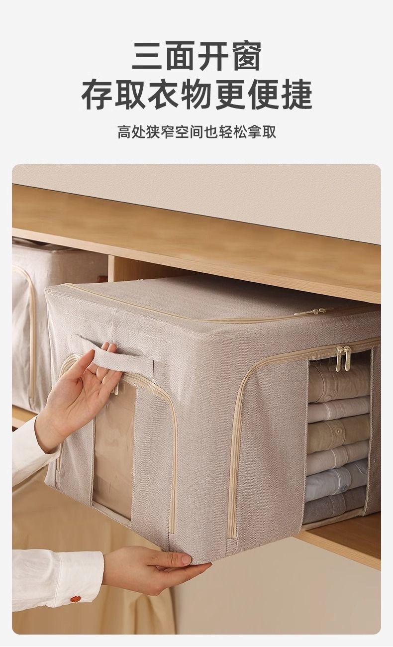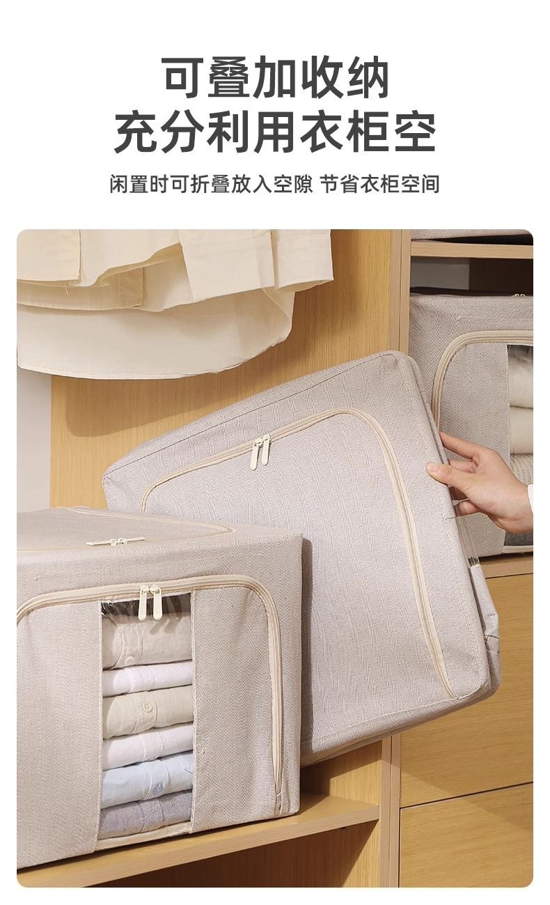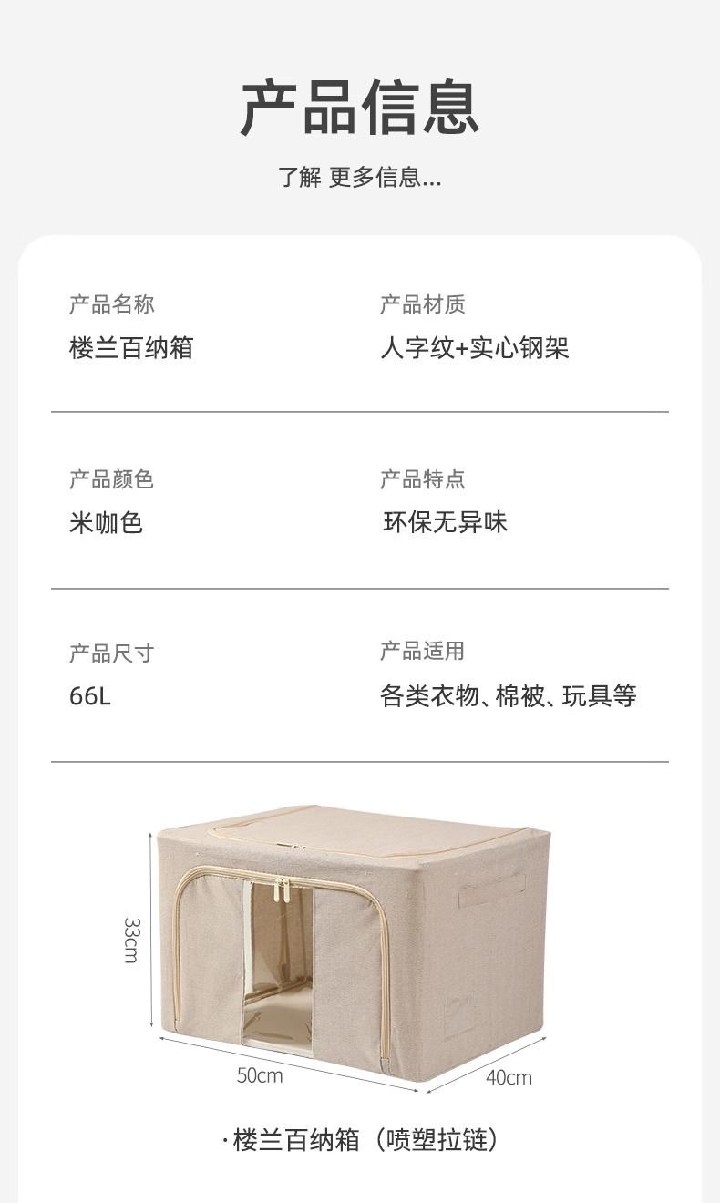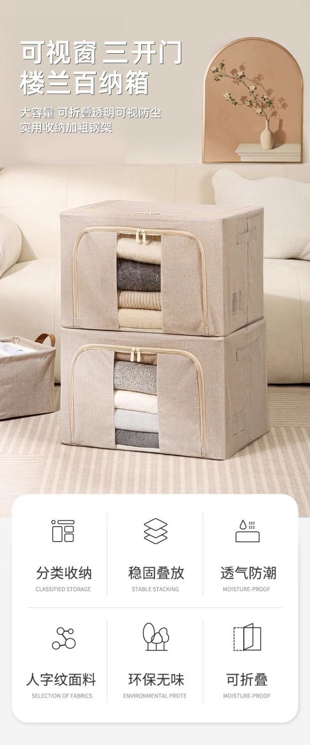 PP板喷塑加粗5.0钢架天山棉麻收纳箱整理师专用家居衣物收纳棉麻