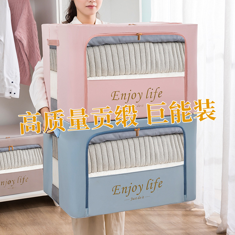 钢架收纳箱贡缎整理箱有盖可折叠收纳储物箱玩具衣服半透明收纳袋