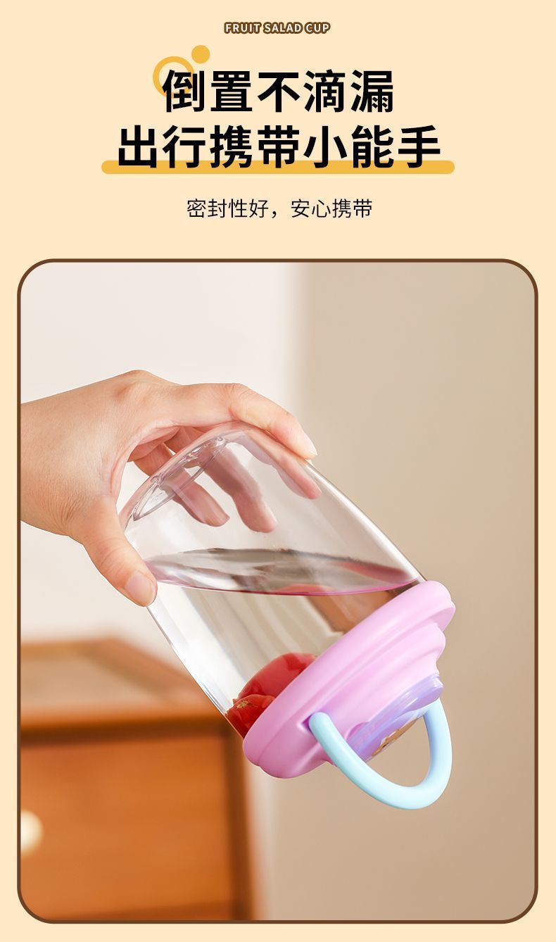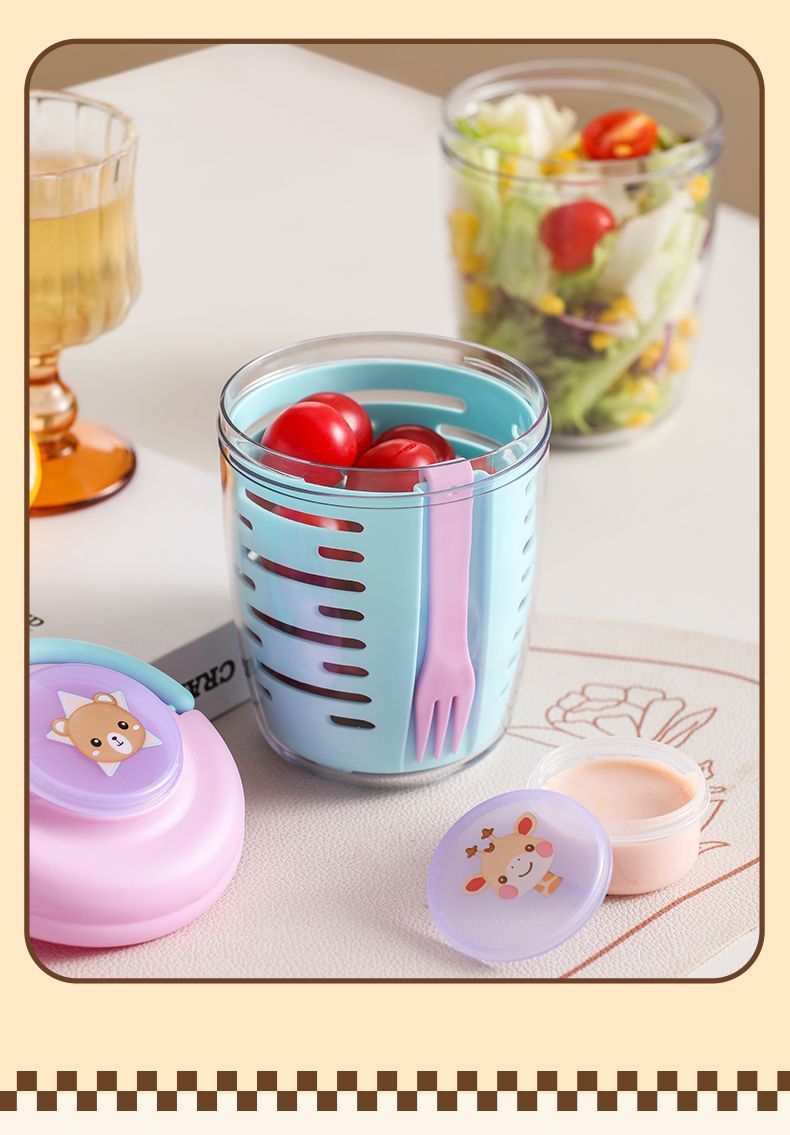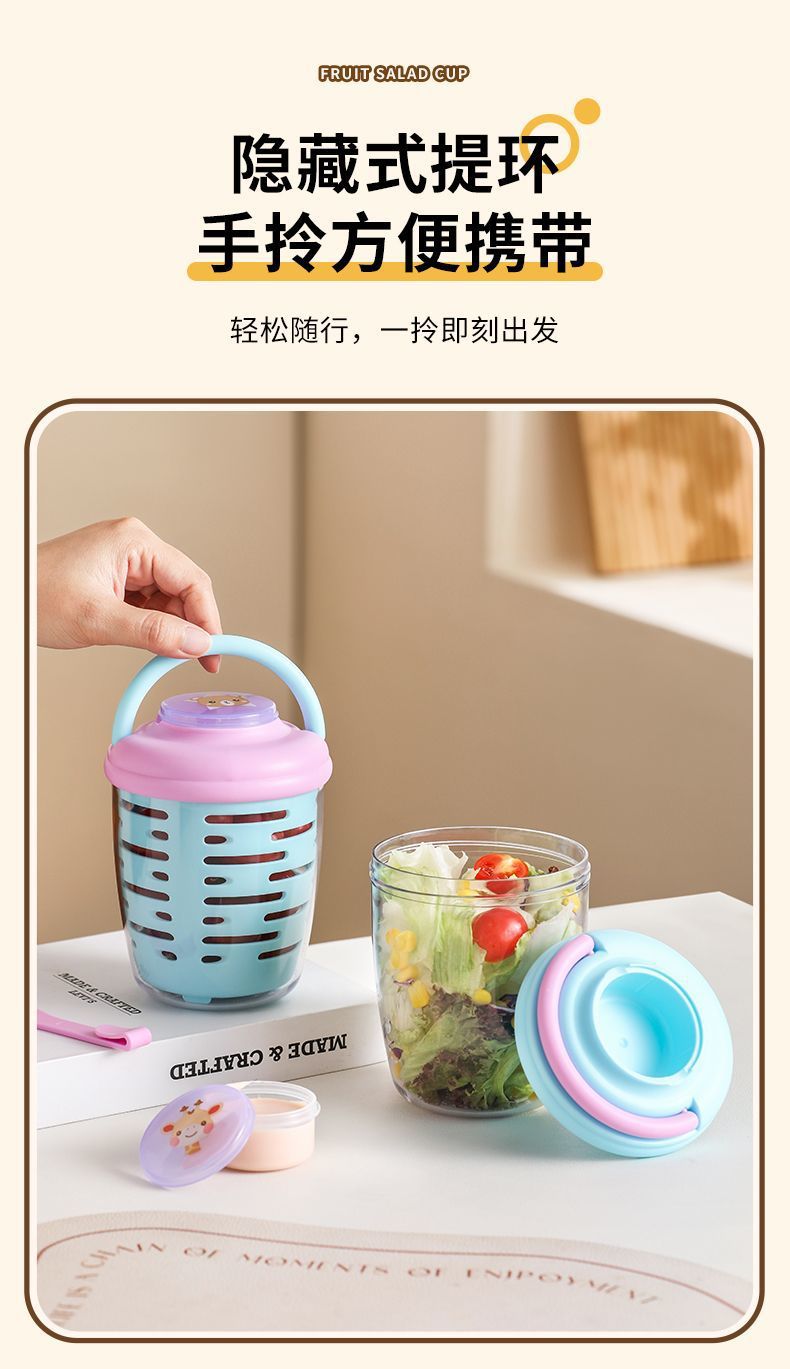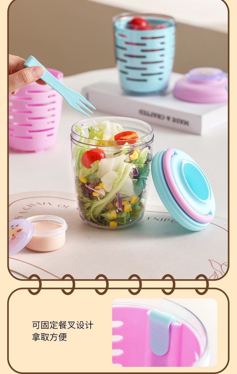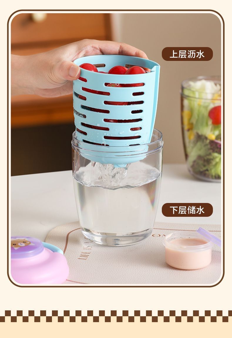 塑料带沥水层双层便携沙拉杯带叉子蘸料盒水果杯户外野餐带手提早