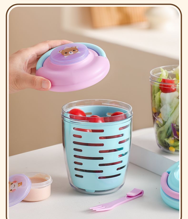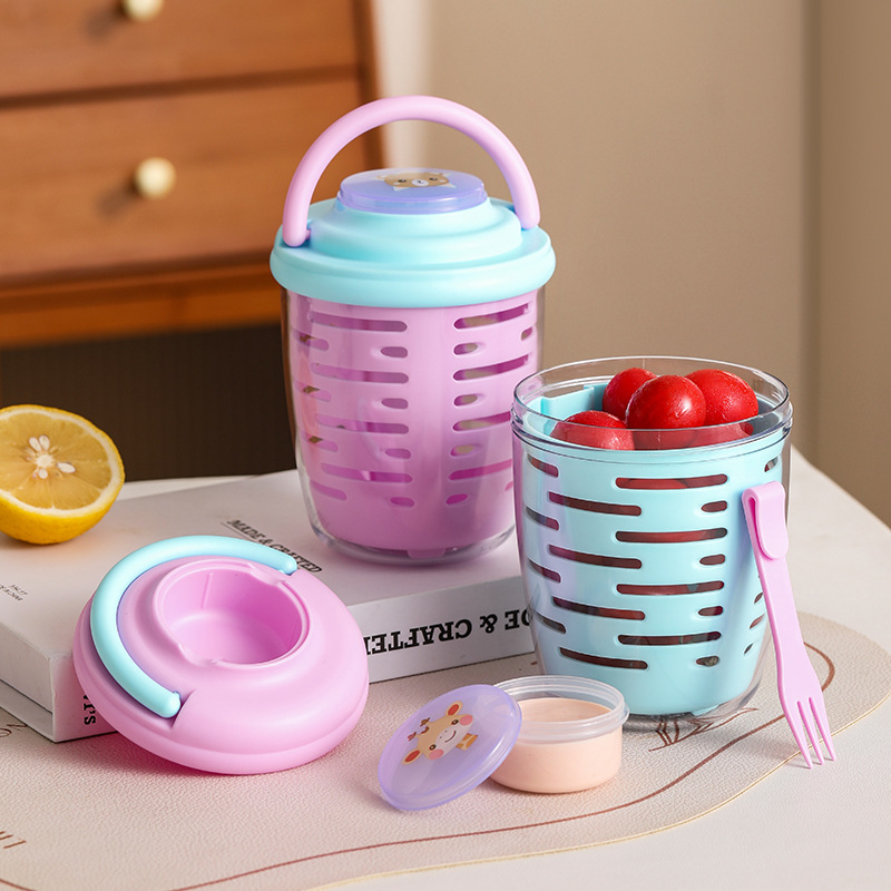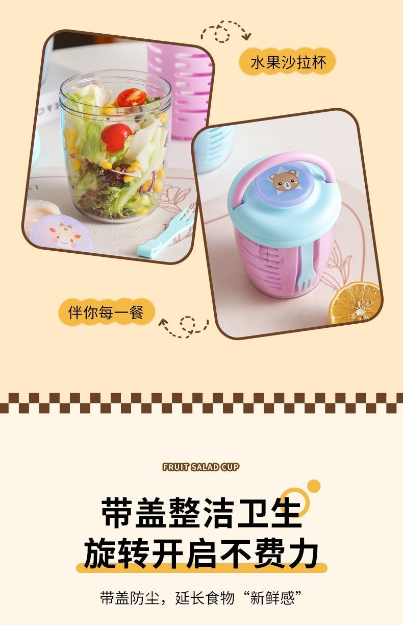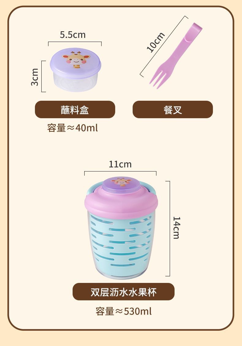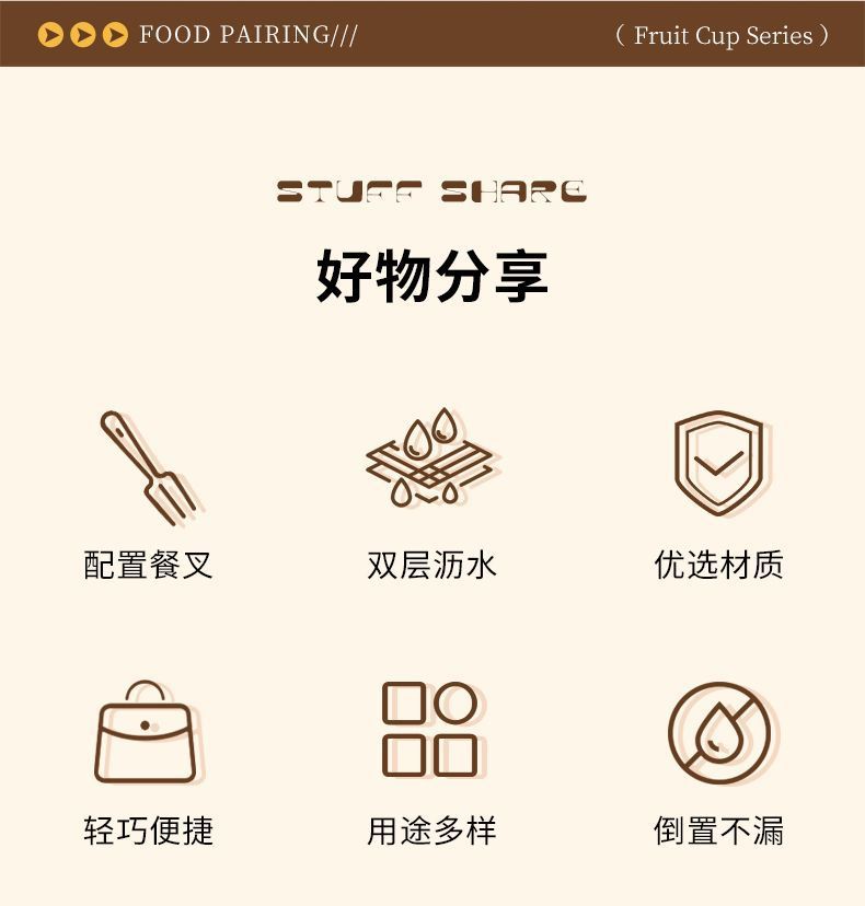 塑料带沥水层双层便携沙拉杯带叉子蘸料盒水果杯户外野餐带手提早