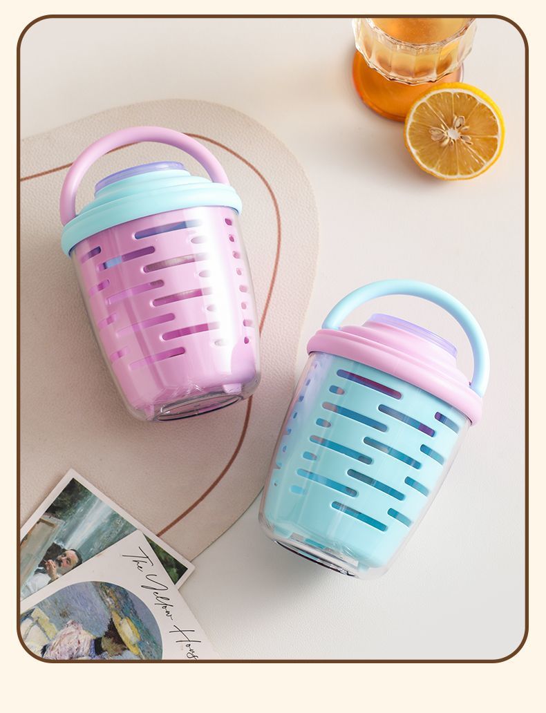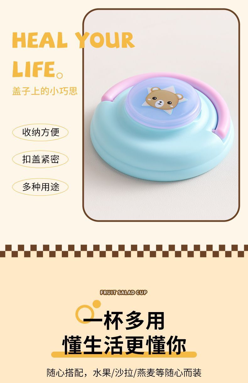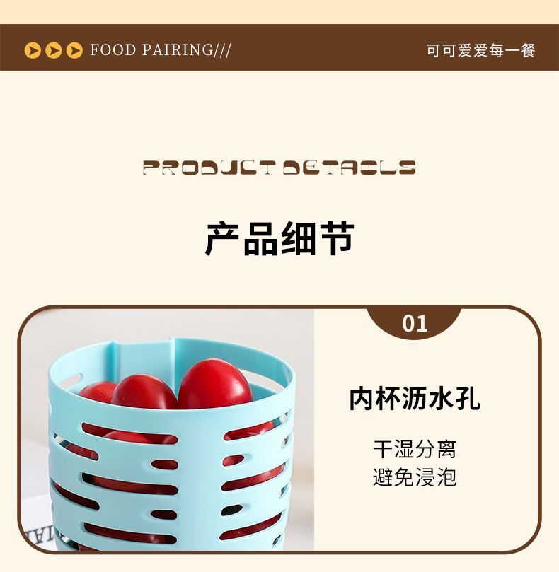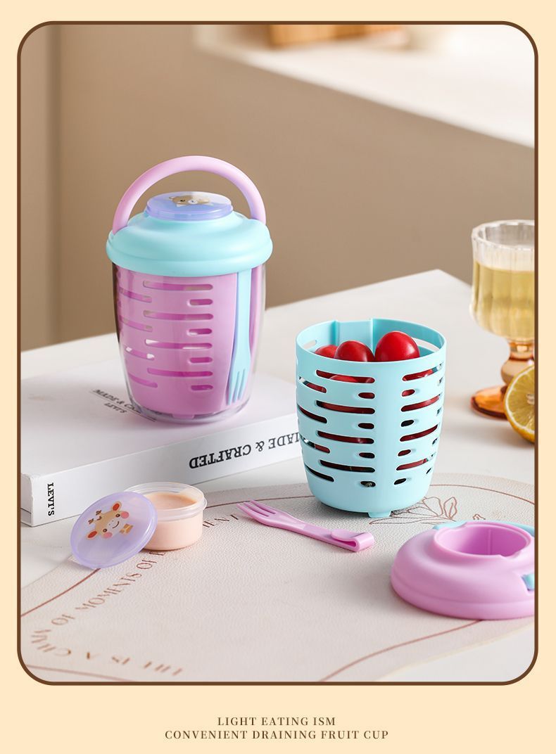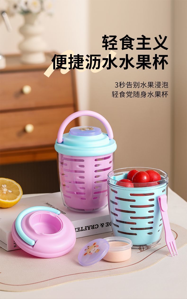 便携外带野餐水果盒便当盒上班族水果沙拉杯水果杯圆形沥水保鲜盒