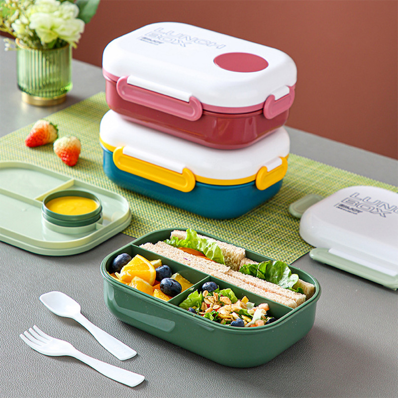 レンジフード付フォークスプーンソース弁当箱大容量シール分格弁当箱サラリーマン学生弁当箱