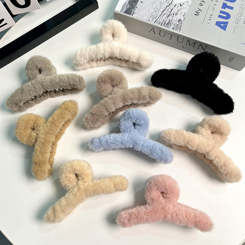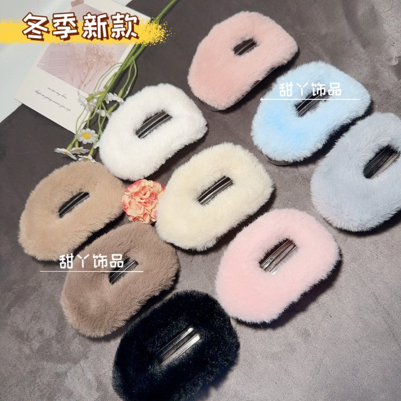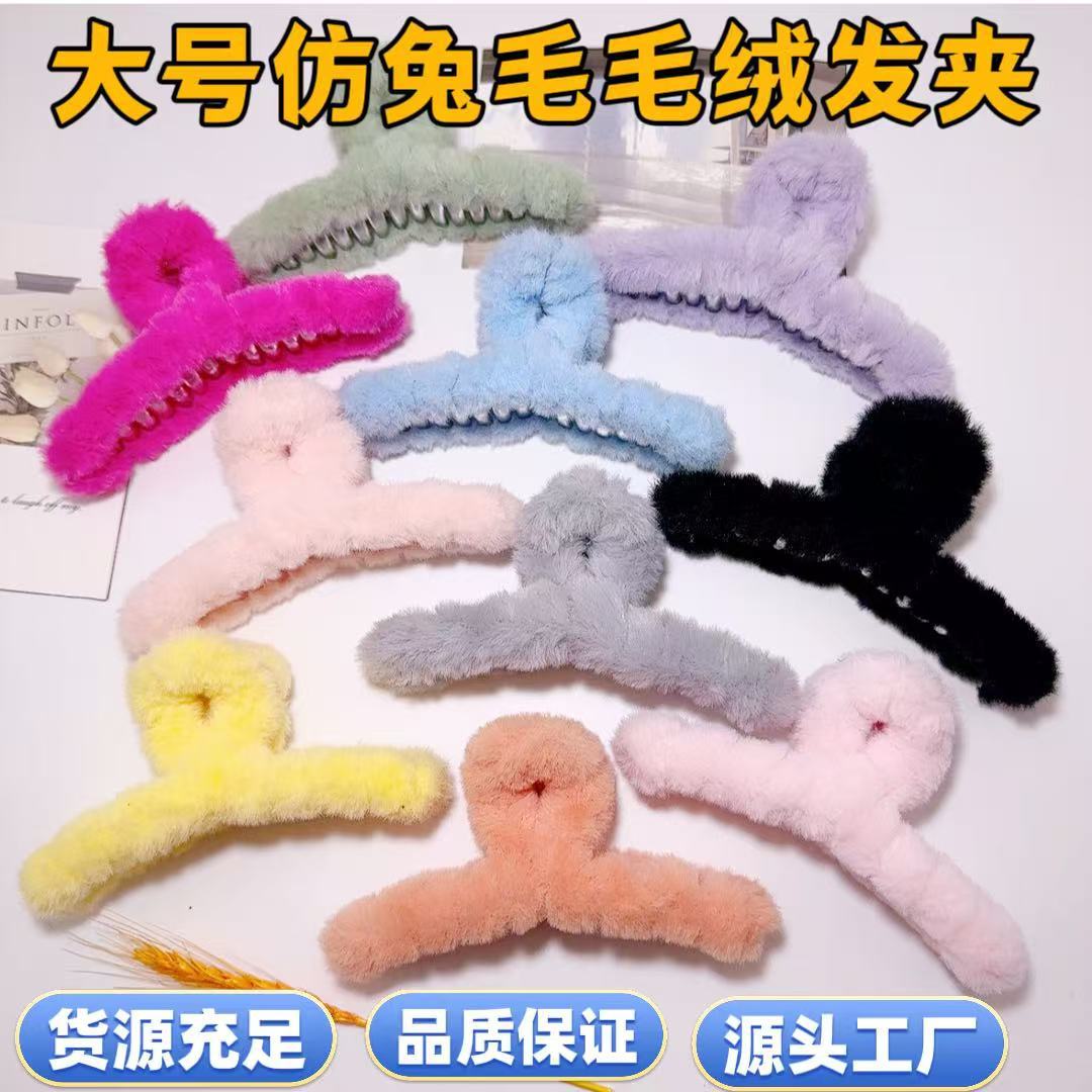 模造ウサギの毛皮ぬいぐるみクリップ韓国秋冬毛皮ヘアクリップ優しいスタイル後頭部大型サメクリップヘアアクセサリー卸売